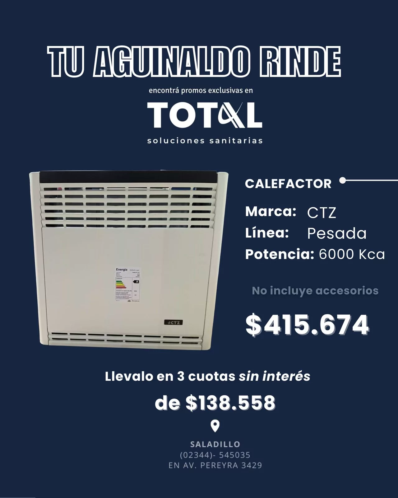 Información General Promociones en Total Sanitarios julio 23, 2025 - Publicidad - 📍 Dirección: Av. Pereyra N° 3429, Saladillo, Teléfono: 02344 54-5035📍 Encontralo en Total 25: Calle 27 1699, Veinticinco de Mayo 📲 Escribinos por WhatsApp al 2345400994 y consultanos.