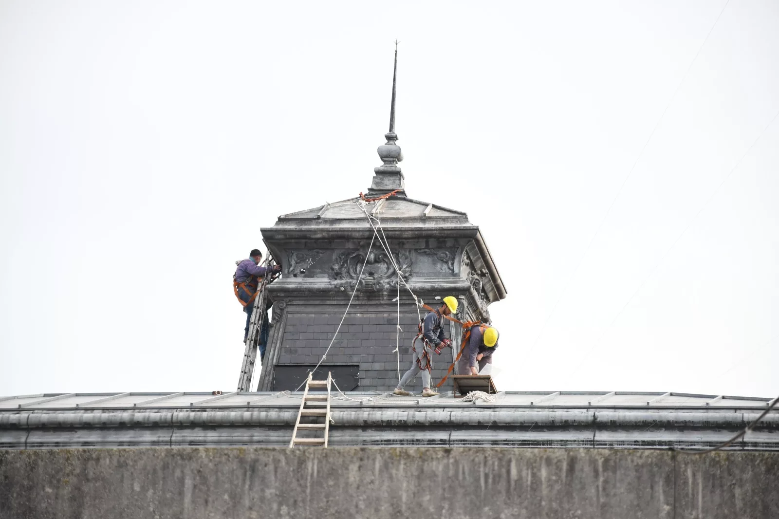 Continúan por estos días los trabajos de reparación y acondicionamiento de la mansarda de la cúpula del edificio de la municipalidad que presentaba deterioros en su estructura.