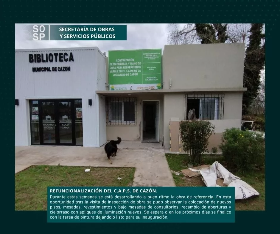 Durante estas semanas se está desarrollando a buen ritmo la obra de referencia. En esta oportunidad tras la visita de inspección de obra se pudo observar la colocación de nuevos pisos, mesadas, revestimientos y bajo mesadas de consultorios, recambio de aberturas y cielorraso con apliques de iluminación nuevos. Se espera q en los próximos días se finalice con la tarea de pintura dejándolo listo para su inauguración.
