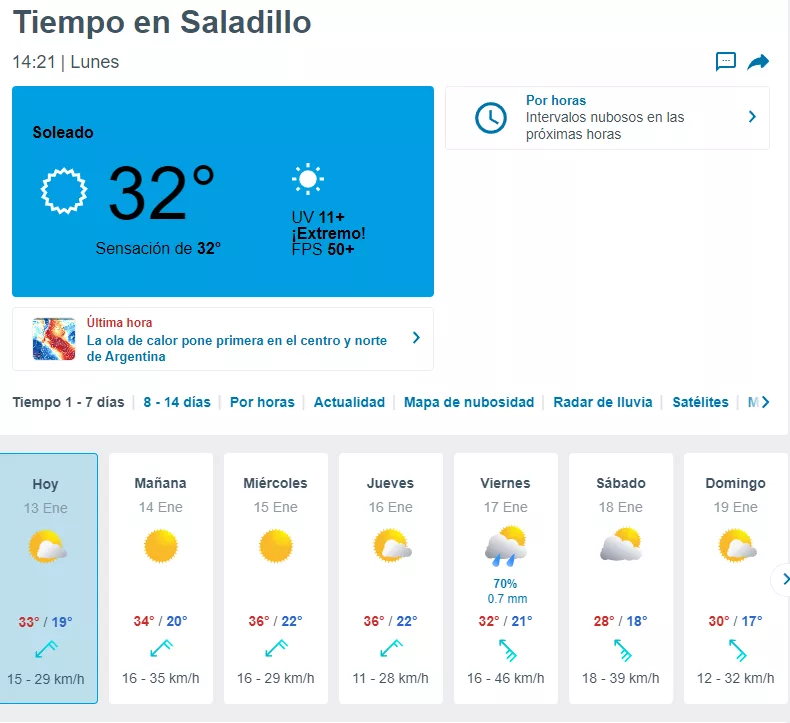 Para más información, ingresar al sitio web: www.smn.gob.ar