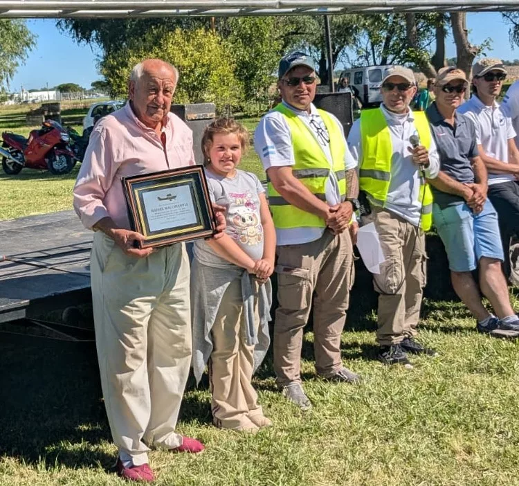 La Comisión Directiva y allegados, realizaron este sábado, durante el encuentro aeronáutico, un homenaje a un histórico de la aviación saladillense, Rafael Machiaroli.