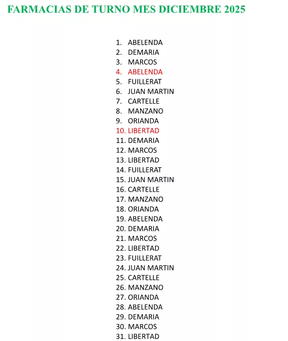 Información General Saladillo || Farmacias de turno diciembre del 2025 noviembre 27, 2025 - Publicidad - Las farmacias de turno pueden tener cambios, Colegio de Farmacéuticos de la Provinciade Buenos Aires Filial Saladillo