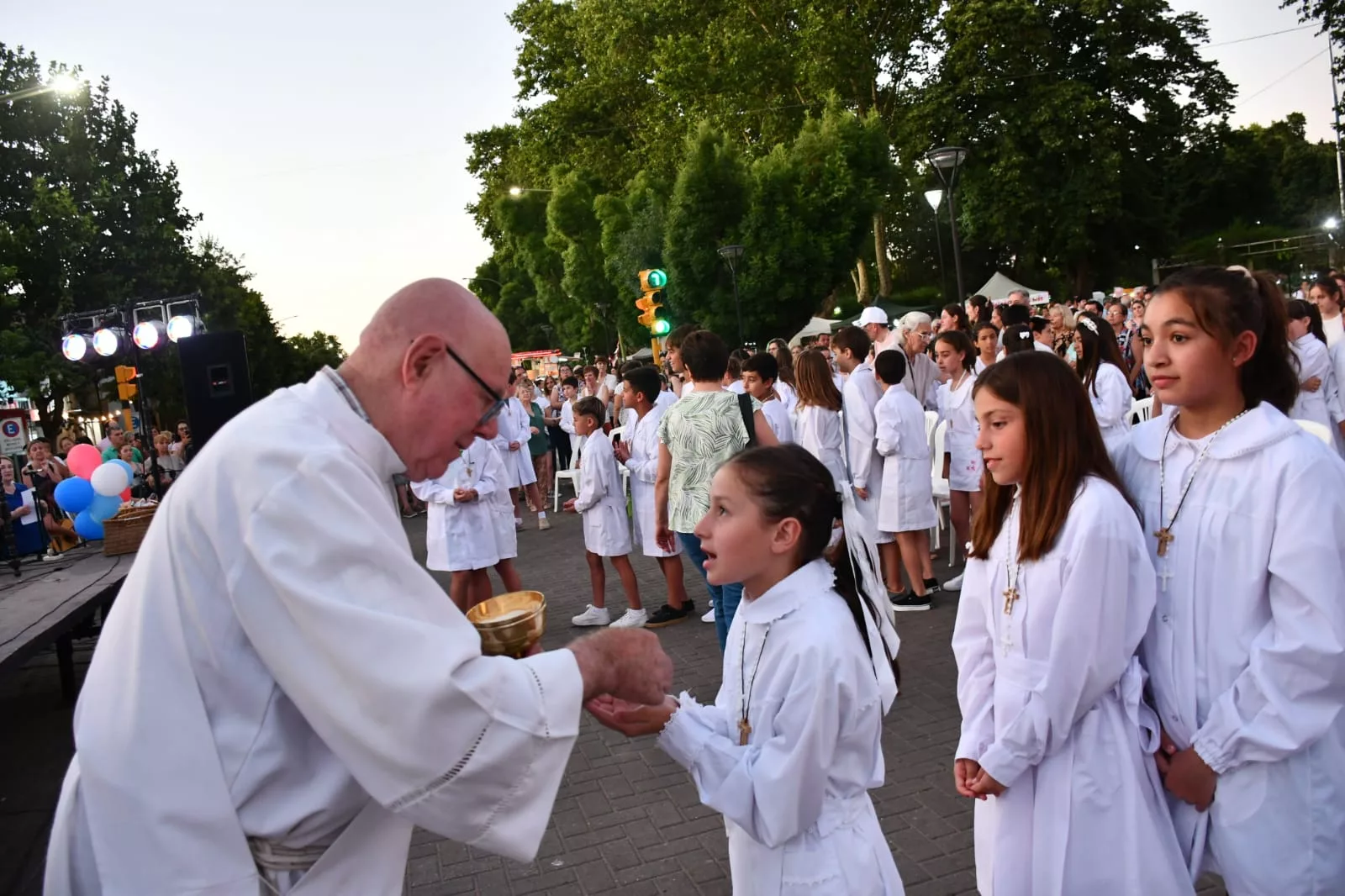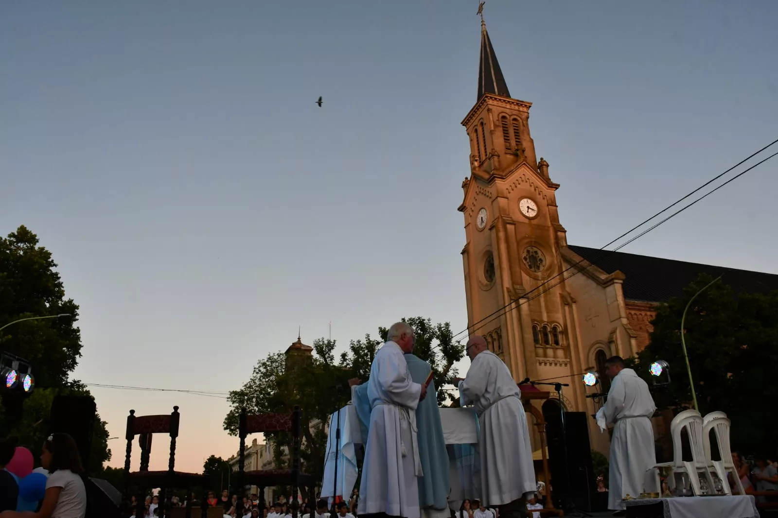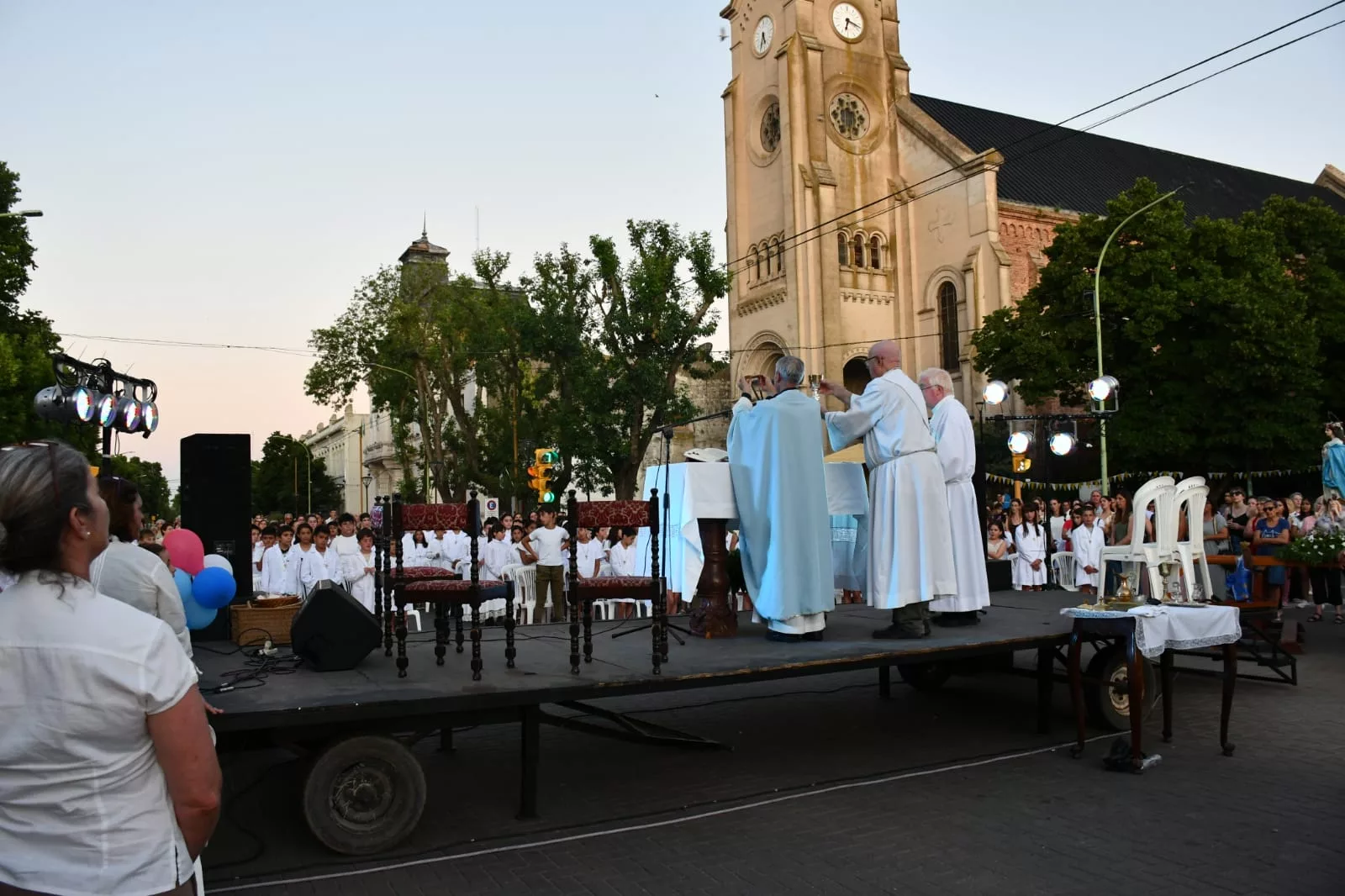 En horas de la tarde se desarrollaron las distintas actividades programadas por la Parroquia Nuestra Señora de la Asunción que incluyó la Expo Pastoral, Escenas Marianas, Procesión y Misa finalizando con la torta de comunión con la participación de los niños y sus familias. Allí estuvo presente también el Intendente Salomón.