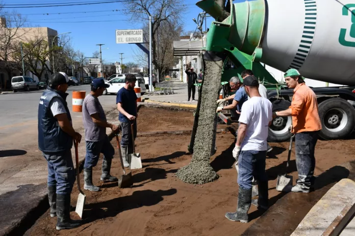 Durante la jornada de ayer se llevaron a cabo los trabajos de hormigonado de la intersección de la Avenida Moreno con la calle Hipólito Yrigoyen que fue totalmente reconstruido porque presentaba fallas estructurales.