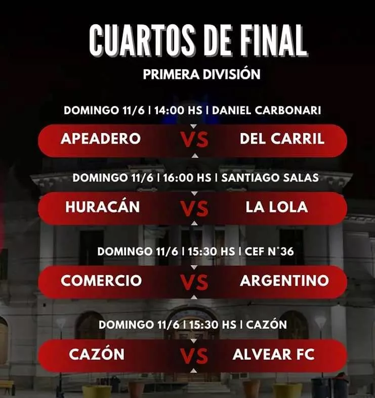 Finalizada la Fase Regular, se llevaran a cabo este domingo, en distintos estadios, los cuartos de final de los torneo de las divisionales mayores del fútbol de Saladillo y Alvear. En primera división Unión Apeadero se quedó con el primer lugar y definirá siempre de local. Precisamente la institución del Barrio Arquitectura se destacó por haber clasificado en todas las divisiones.