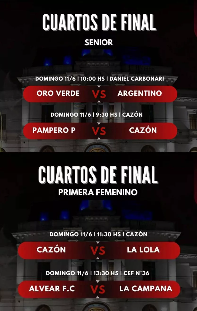 Primera femenino: Apeadero y Oro Verde ya en semis esperan los cruces entre: Cazón vs. La Lola y Alvear F.C vs. La Campana por cuartos de final.