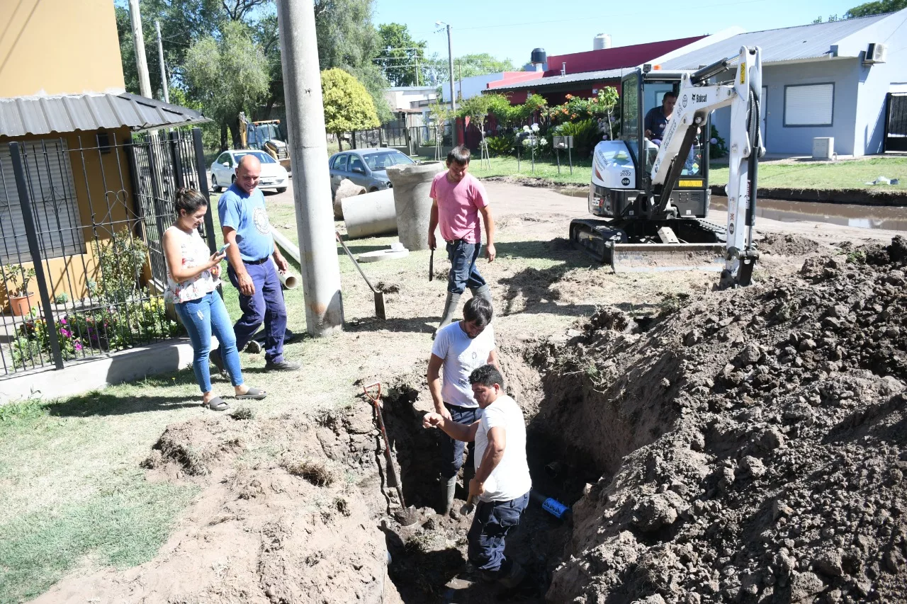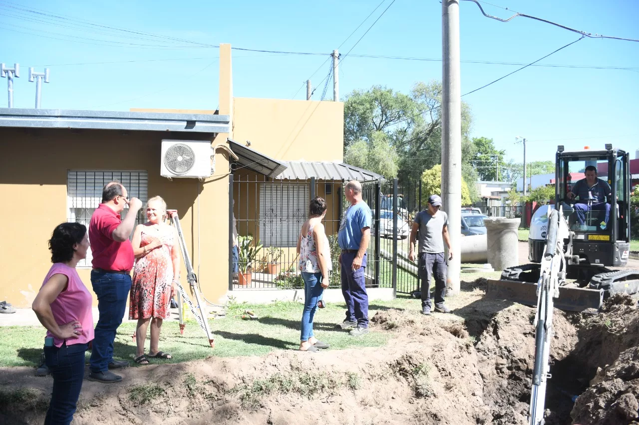 El Intendente Salomón acompañado por la Subsecretaria de Servicios Sanitarios y Gestión Ambiental Ing. Mariela Incolla observó los trabajos de readecuacion de cañerías existentes en la zona de la intersección de calles Viale e Ingenieros, que se están llevando cabo y son necesarias dado que también allí se realiza obra de cordón cuneta.