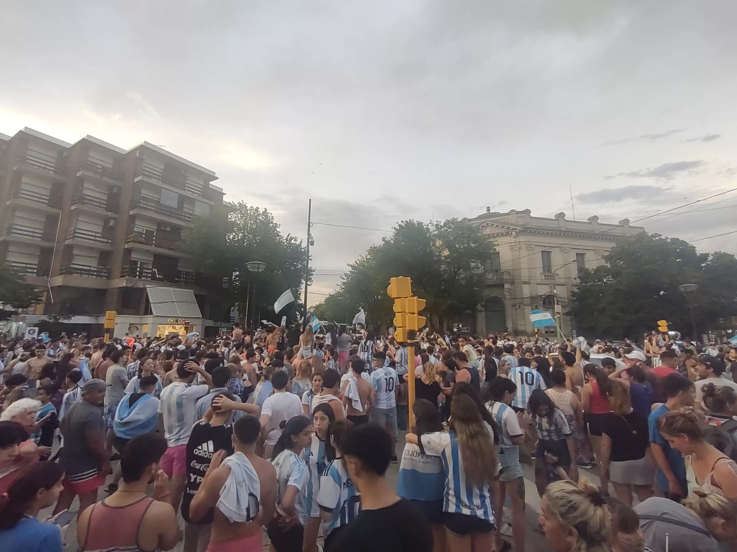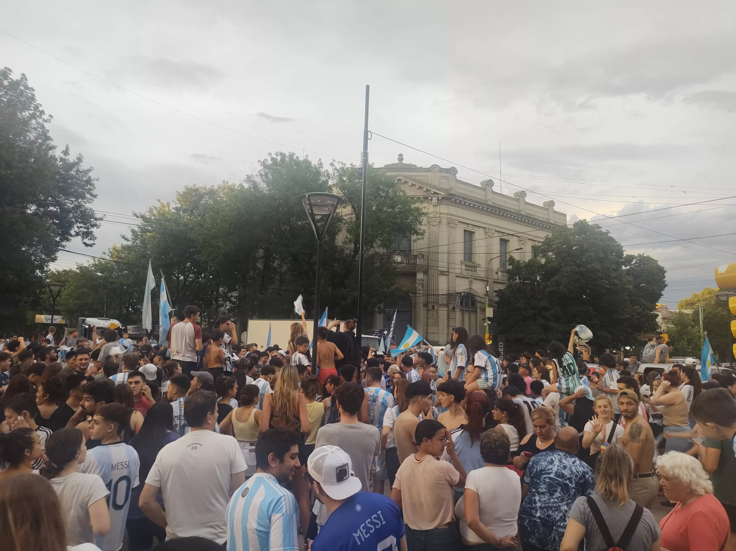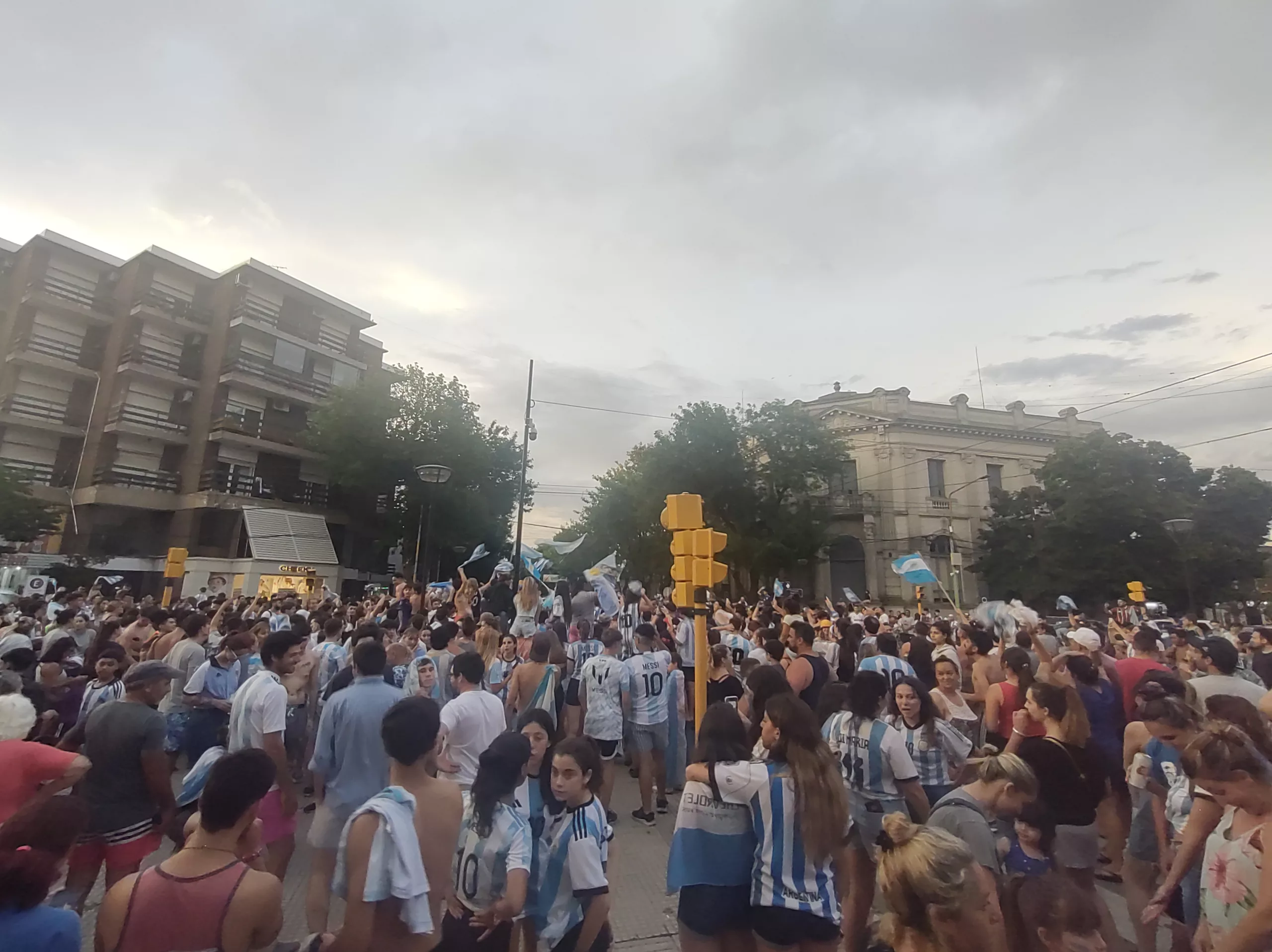 Información General Una multitud festejo en la Plaza principal diciembre 10, 2022 - Publicidad - Al finalizar el partido de la selección Argentina se vivió una fiesta en la tradicional esquina de Moreno y Rivadavia donde los Saladillenses concurrieron para festejar el triunfo de la selección.