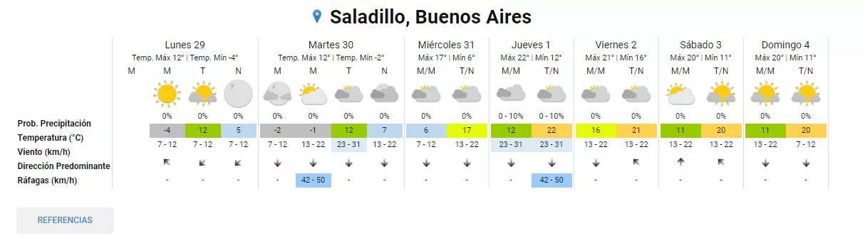 A pesar del comienzo de semana frío, con temperaturas casi polares en el AMBA, a medida que se va acercando el próximo fin de semana la temperatura comenzará a elevarse, llegando casi a una máxima de 30 °C, según lo pronosticado por el Servicio Meteorológico Nacional.