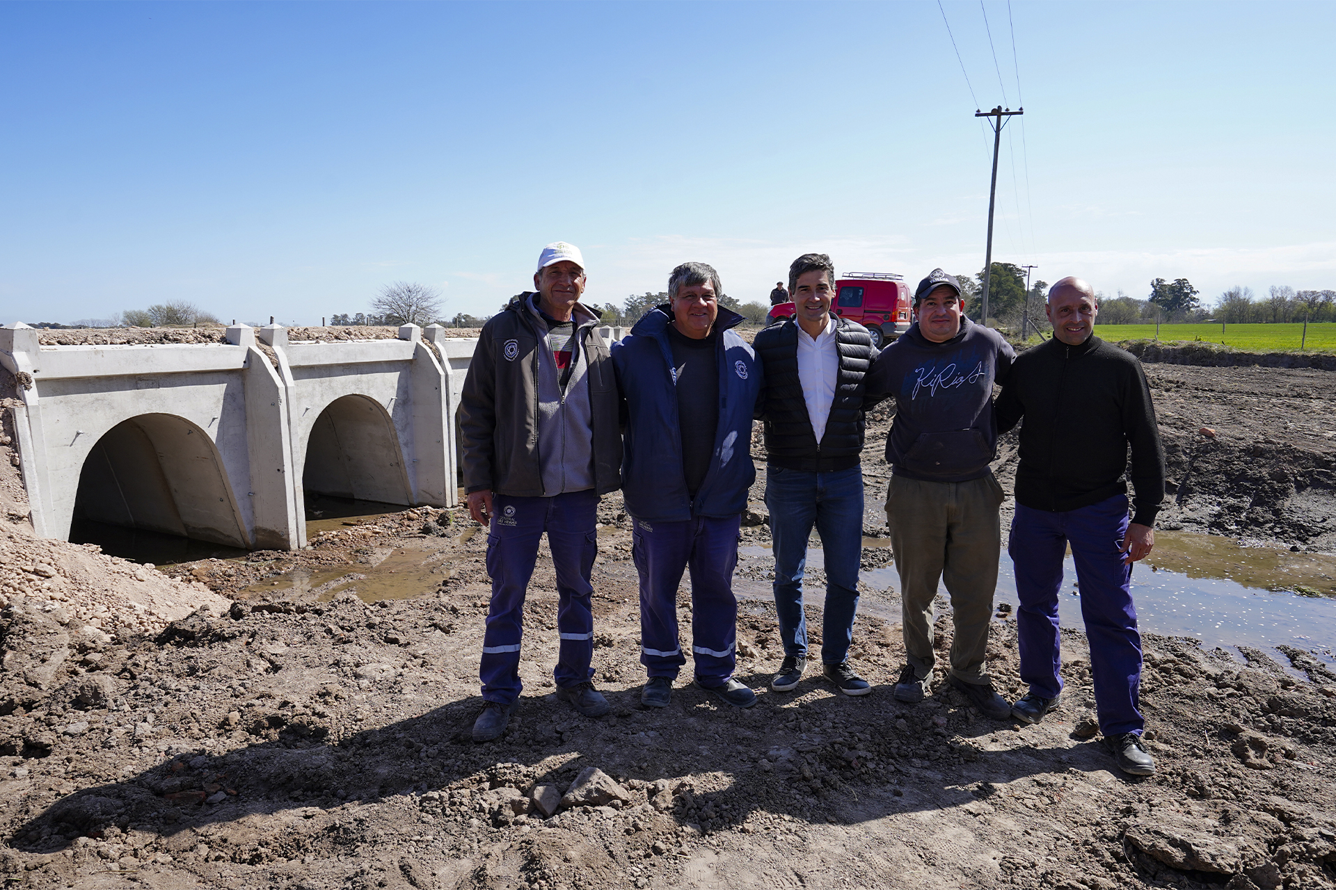 Los mandatarios iniciaron la recorrida con la visita a la obra de reconstrucción del puente en el Camino N° 041-04, sobre el arroyo El Duraznillo. Se trata de una intervención muy importante, ya que aumentará la conectividad de las vecinas y vecinos, como así también posibilitará que el tránsito pesado pueda circular de forma segura y sin contratiempos.
