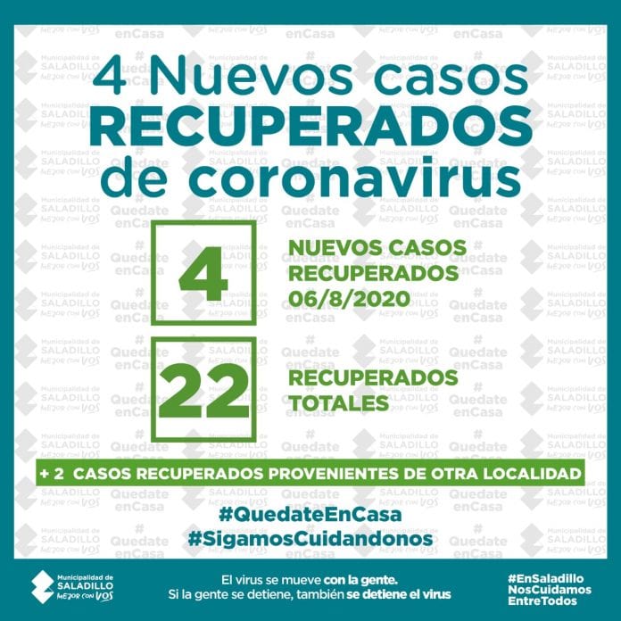 Saladillo 4 nuevos casos recuperados de coronavirus agosto 6, 2020 - Publicidad - 4 casos recuperados 06/08/202022 casos recuperados totales