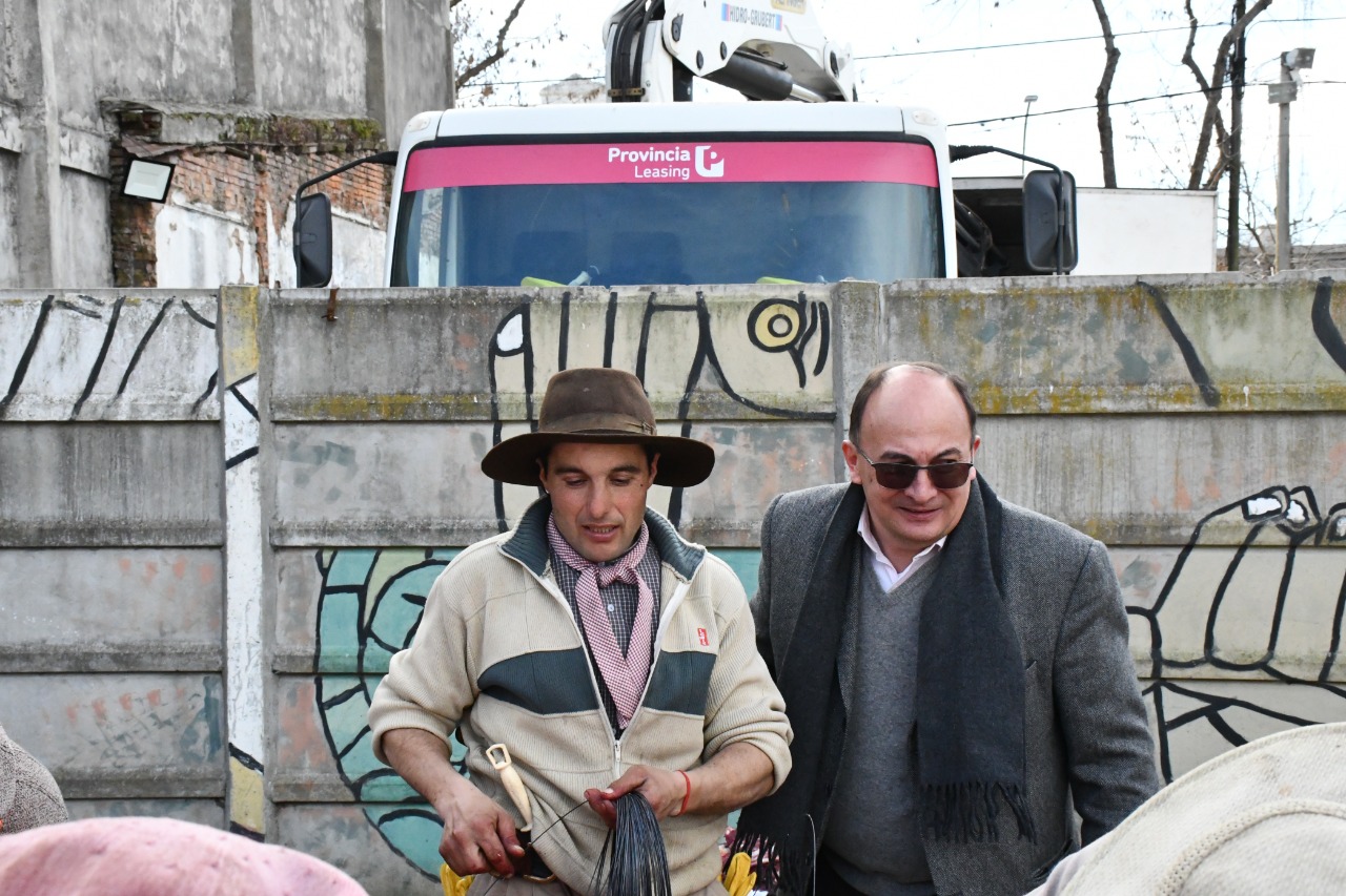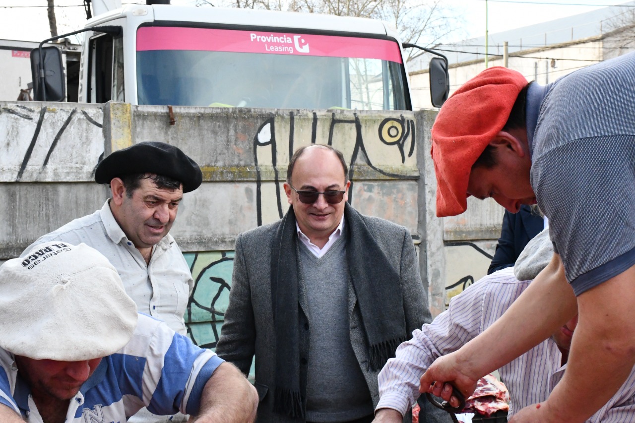 El sábado por la tarde, el Intendente Salomón concurrió al predio de “La Esquina” ubicado en la intersección de Moreno y Toledo, donde todo el equipo de asadores comenzaba a preparar la tarea que llevaban adelante desde las primeras horas del domingo para preparar la carne que luego fue vendida en sándwiches a beneficio de las instituciones de nuestro medio.