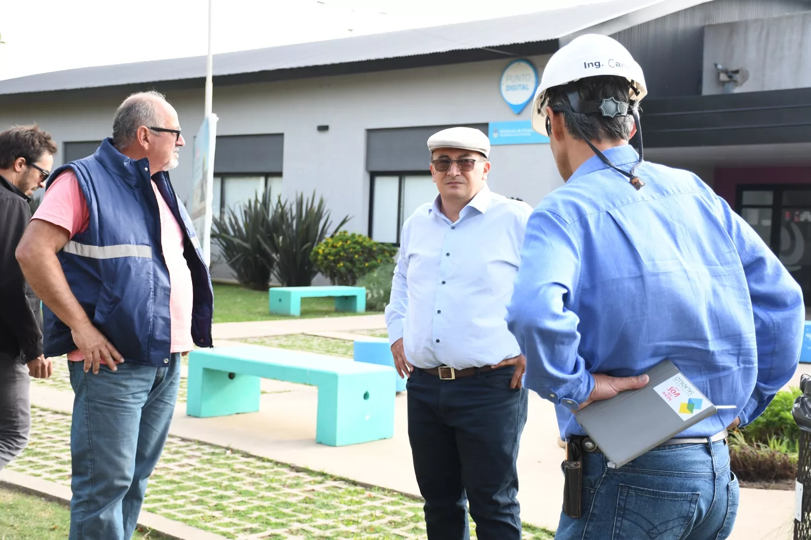 El Intendente Salomón acompañado por el Secretario de Obras Públicas Ing. Guillermo Candia y el Subsecretario del área Arq. Matías Salomón, concurrió a observar los trabajos de construcción de cordón cuneta en las cuadras circundantes al edificio del Centro Universitario Regional Saladillo.
