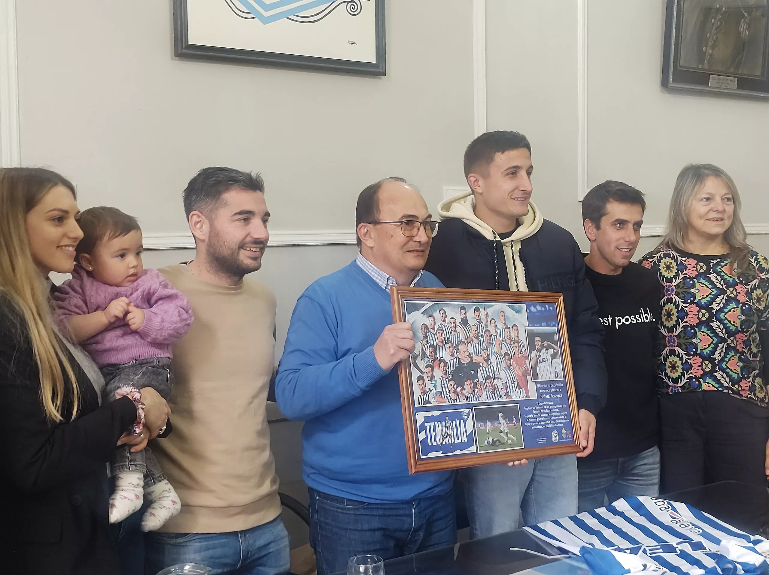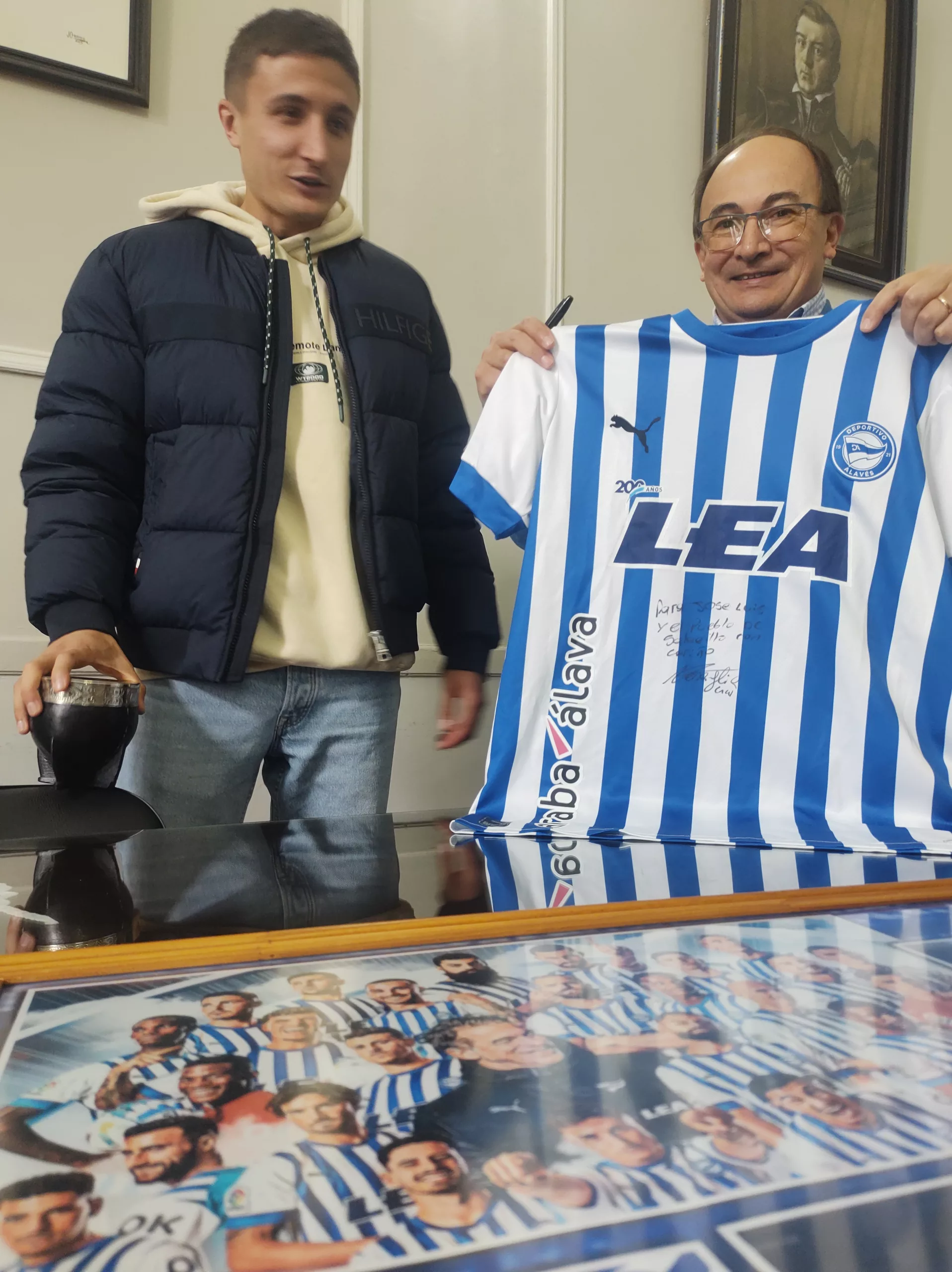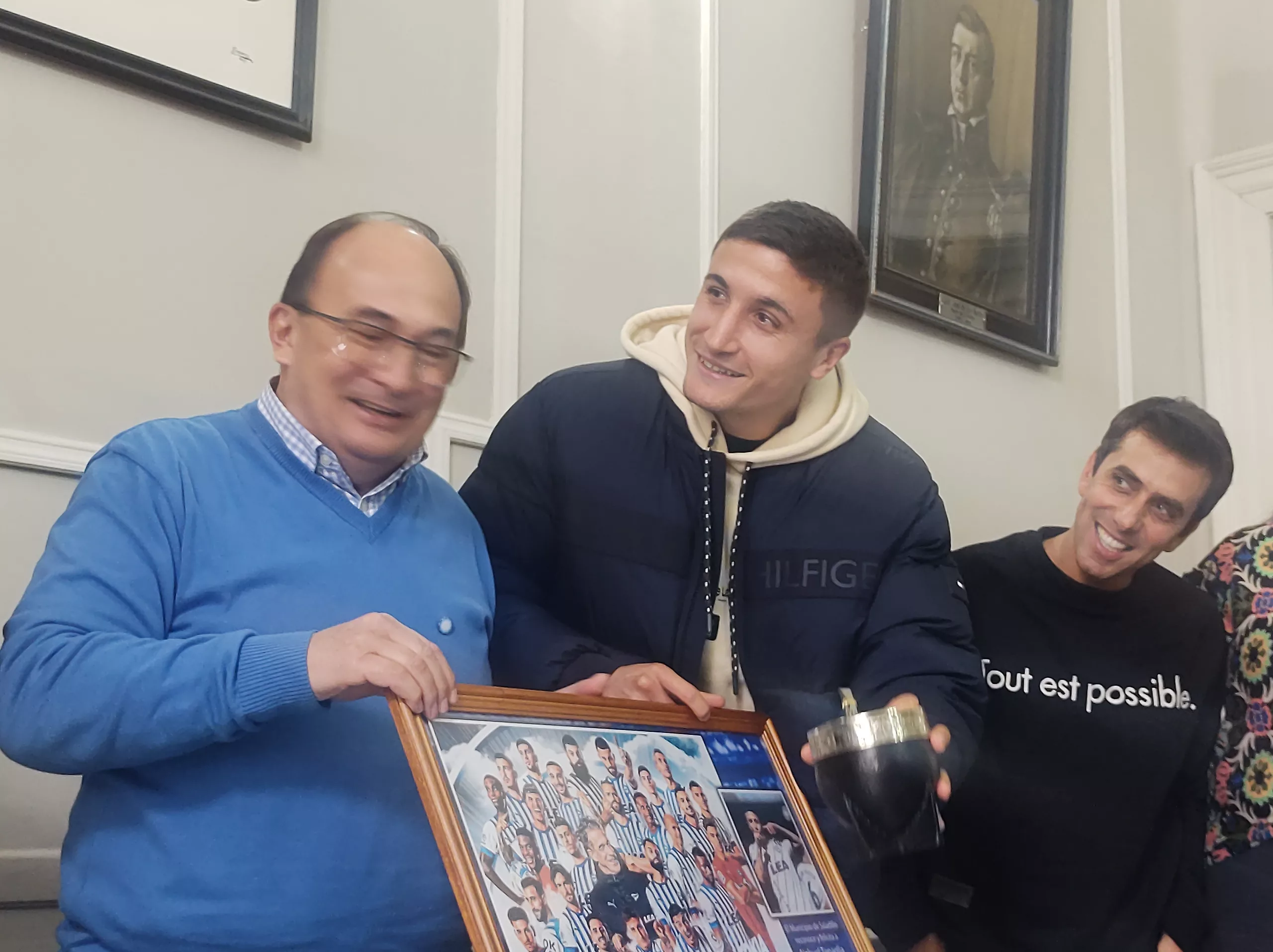 Ya en tiempo de festejos junto a su familia y en Argentina, más puntualmente en Saladillo, fue recibido este martes por el Intendente José Luis Salomón, junto a sus principales funcionarios, donde recibió algunos presentes e inclusive el Intendente recibió, además, la camiseta del Alaves.