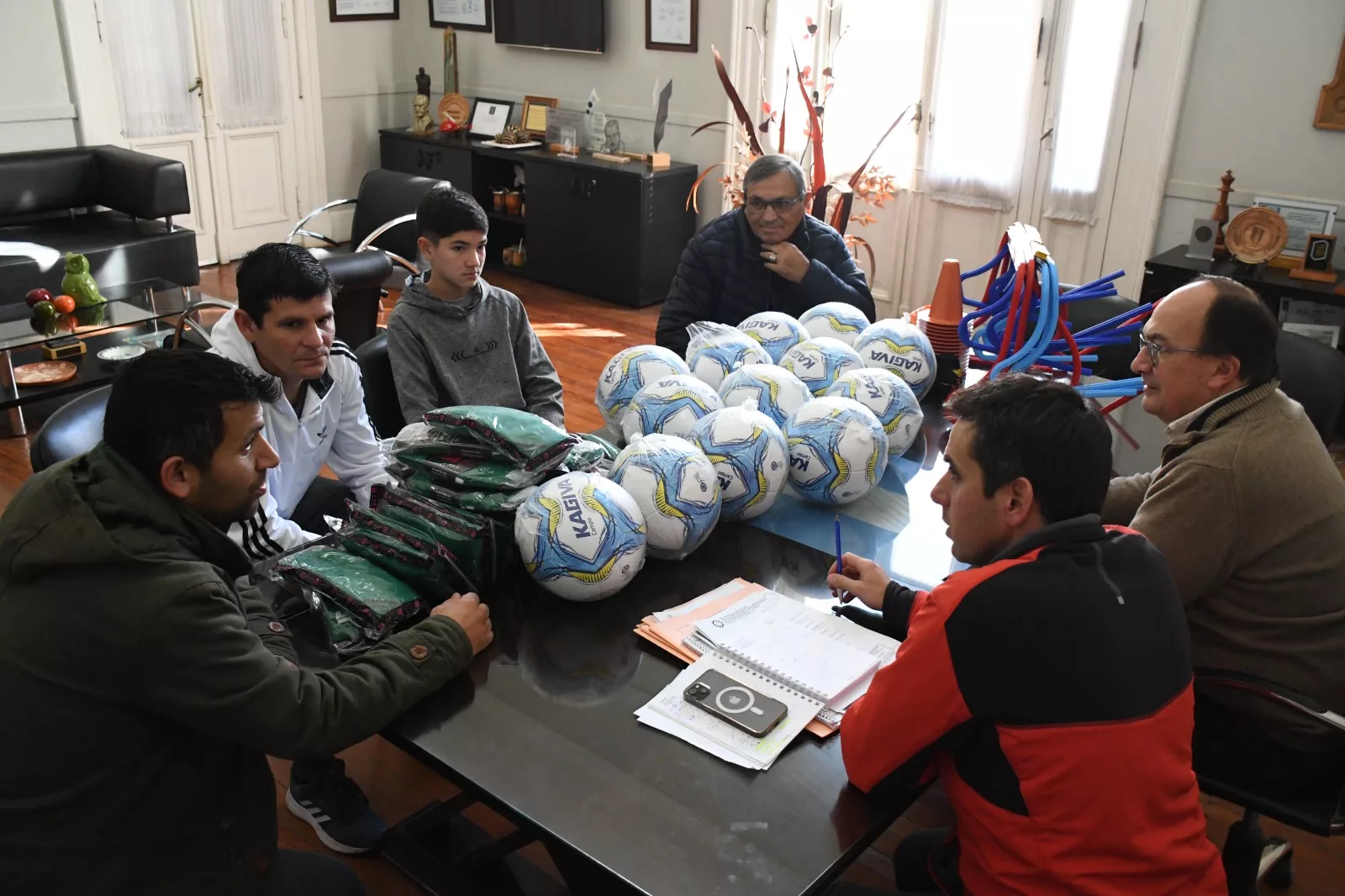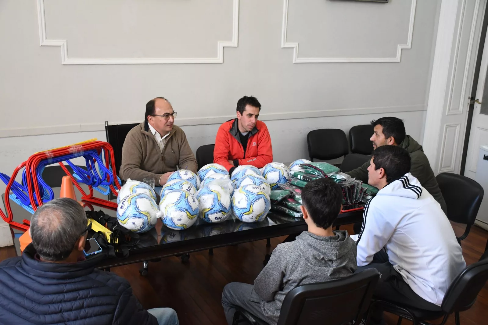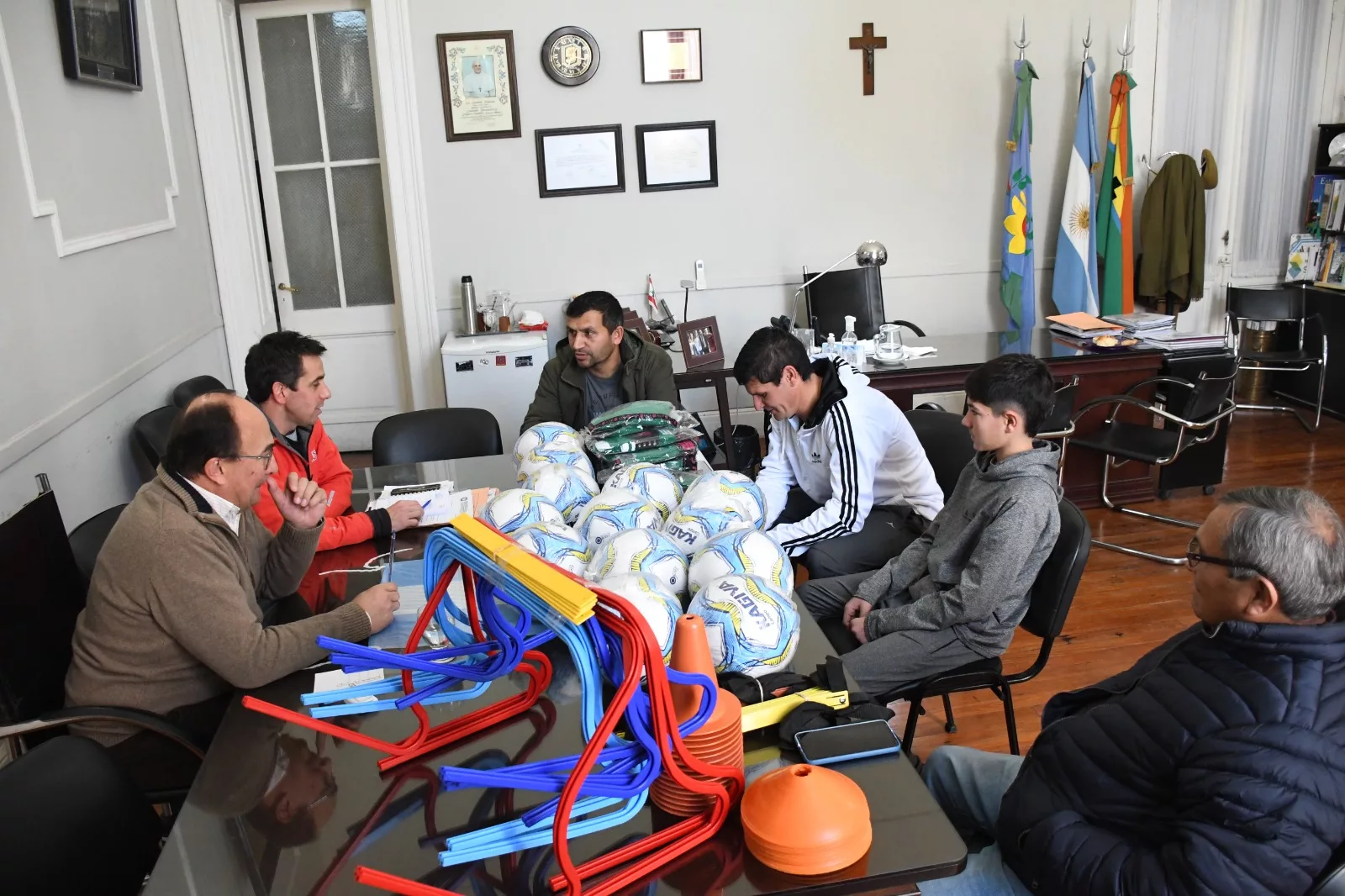 El motivo de la reunión fue entregarle material deportivo a esta institución deportiva. Como se recordará, Cazón además de presentar sus categorías en las divisiones mayores, también cuenta con fútbol femenino y sumó hace un año las divisiones inferiores.
