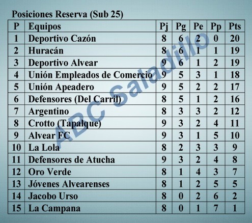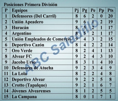 Luego el resto de la fecha se jugará el domingo en Saladillo, Del Carril, Alvear, Cazón y Saladillo Norte.