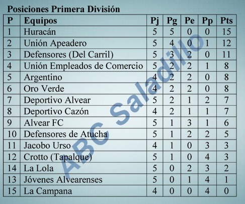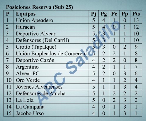 Con partidos en Saladillo, Del Carril, Cazón y General Alvear, se disputó la quinta fecha del Torneo de Primera División y Reserva (Sub25).