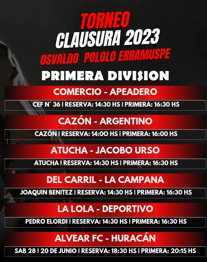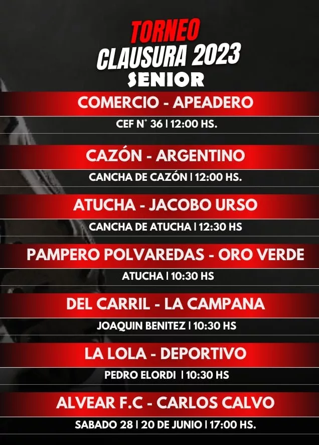 Habrá partidos en Saladillo, Alvear, Del Carril, Cazón y Saladillo Norte.
