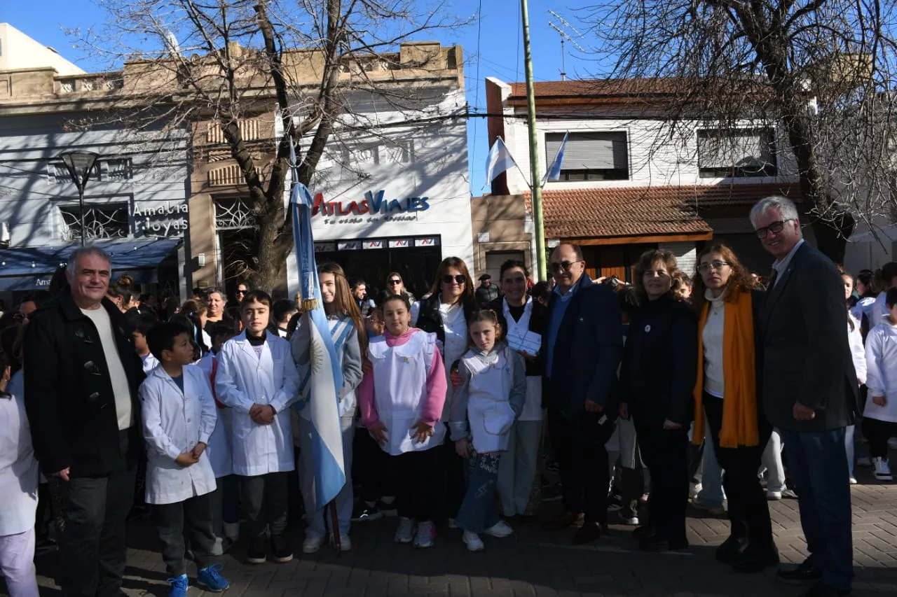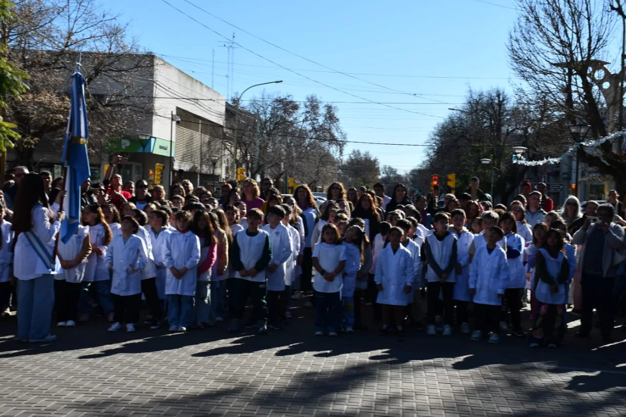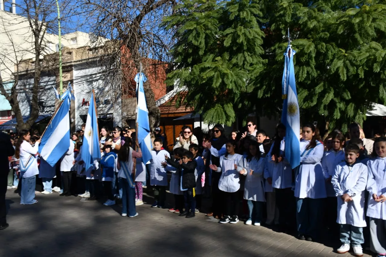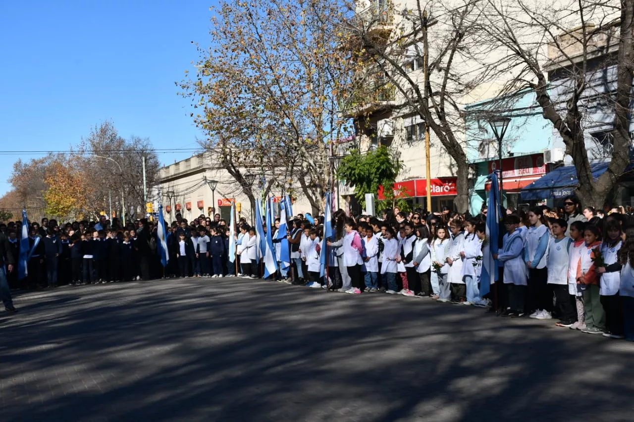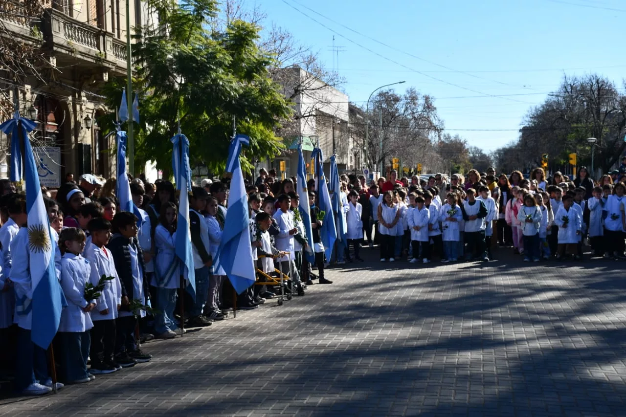 El acto se realizó en Homenaje a un nuevo Aniversario de la Muerte del General Manuel Belgrano, frente a su Monumento, ubicado en la Plaza Principal, sobre la Avenida que lleva su nombre. Allí se entonaron las estrofas del Himno Nacional interpretado por el dúo Flavia y Walter, que al final también cantaron Aurora. Luego se depositaron las ofrendas con ramos de laureles y hubo palabras de una docente del Instituto Niño Jesús y la Directora de la Escuela 38, como así también del Intendente Municipal Ingeniero José Luis Salomón. Posteriormente el Inspector Jefe Distrital Hernán Ponce tomó la promesa a todos los alumnos presentes. A continuación se realizó la entrega de los certificados correspondientes y hubo una participación de la Escuela de Danzas Folclóricas del Profesor Hernán Calcaterra. Todo concluyó con el tradicional chocolate Patrio para todos los participantes frente al Municipio local.