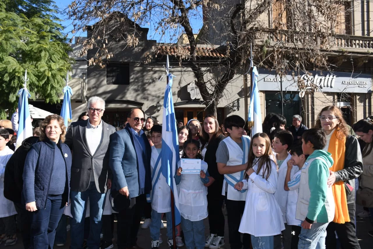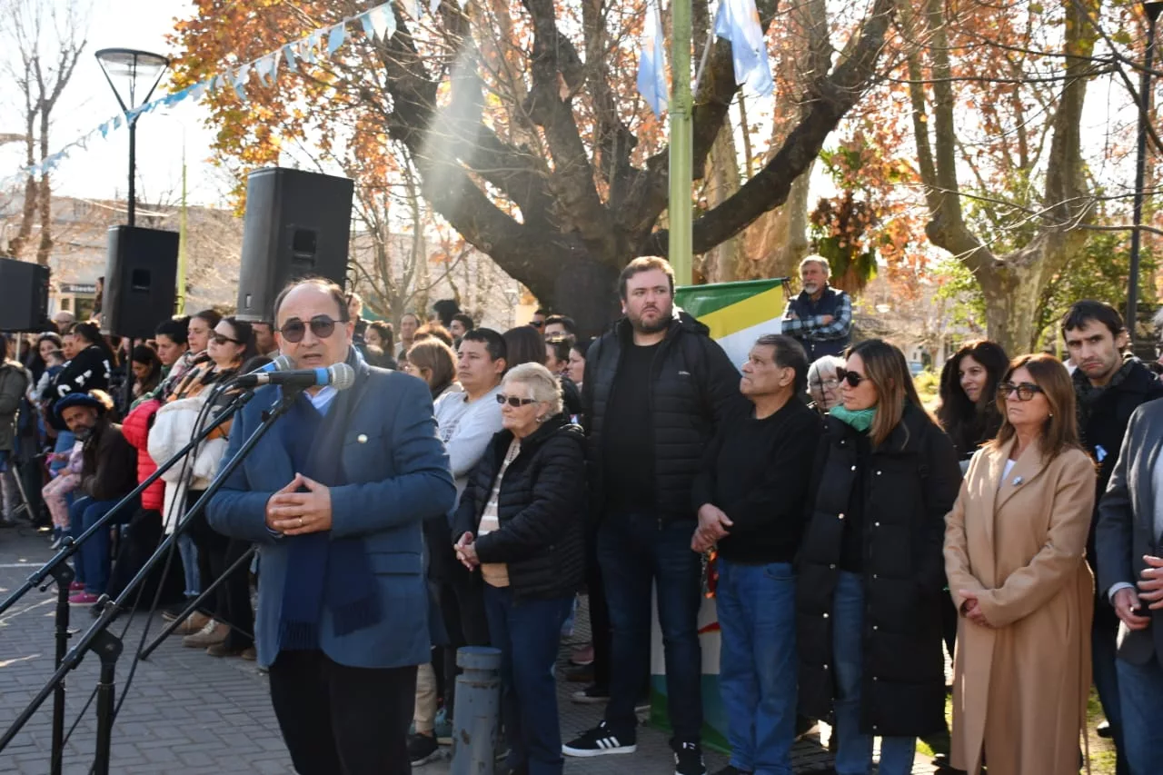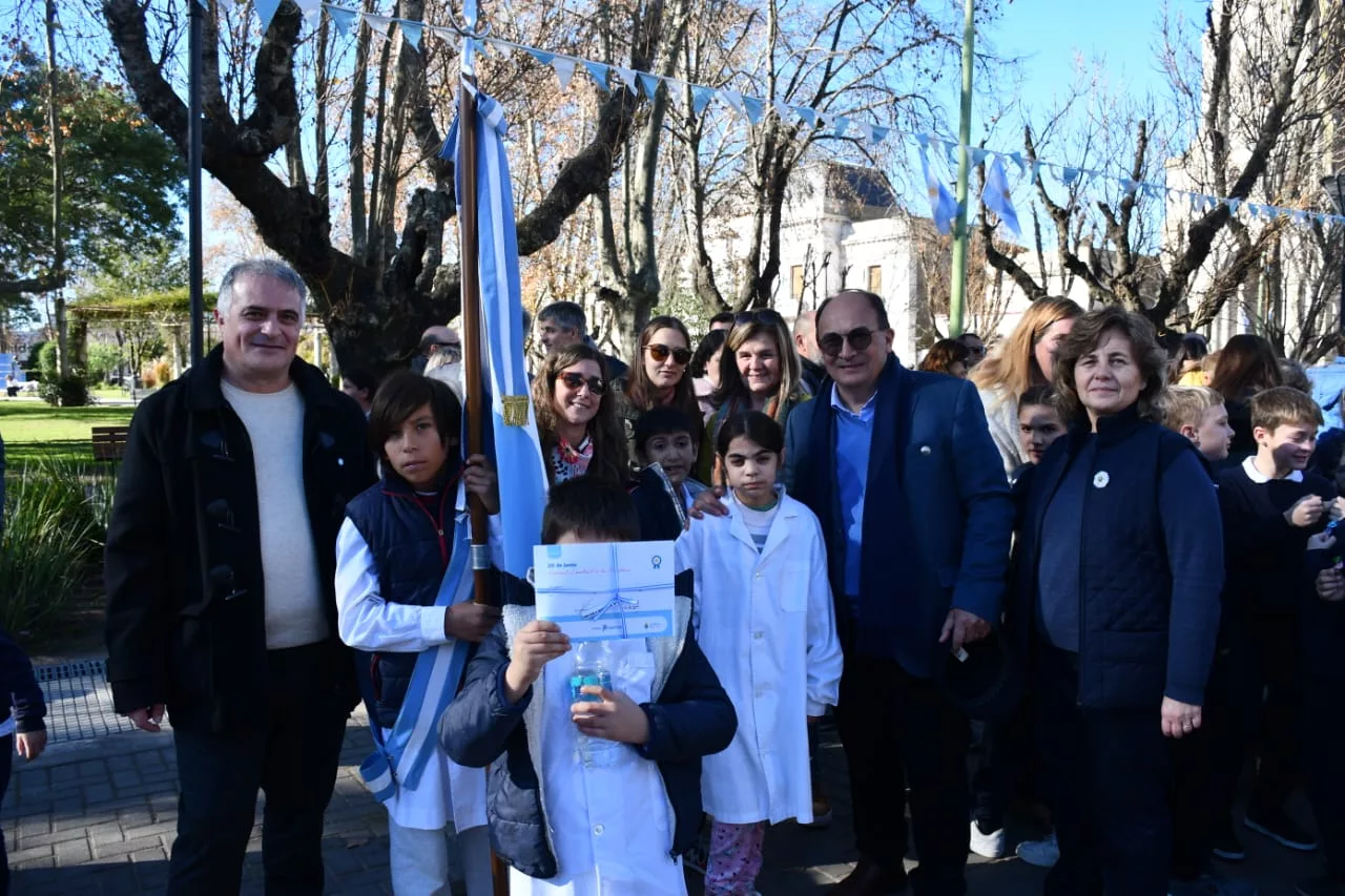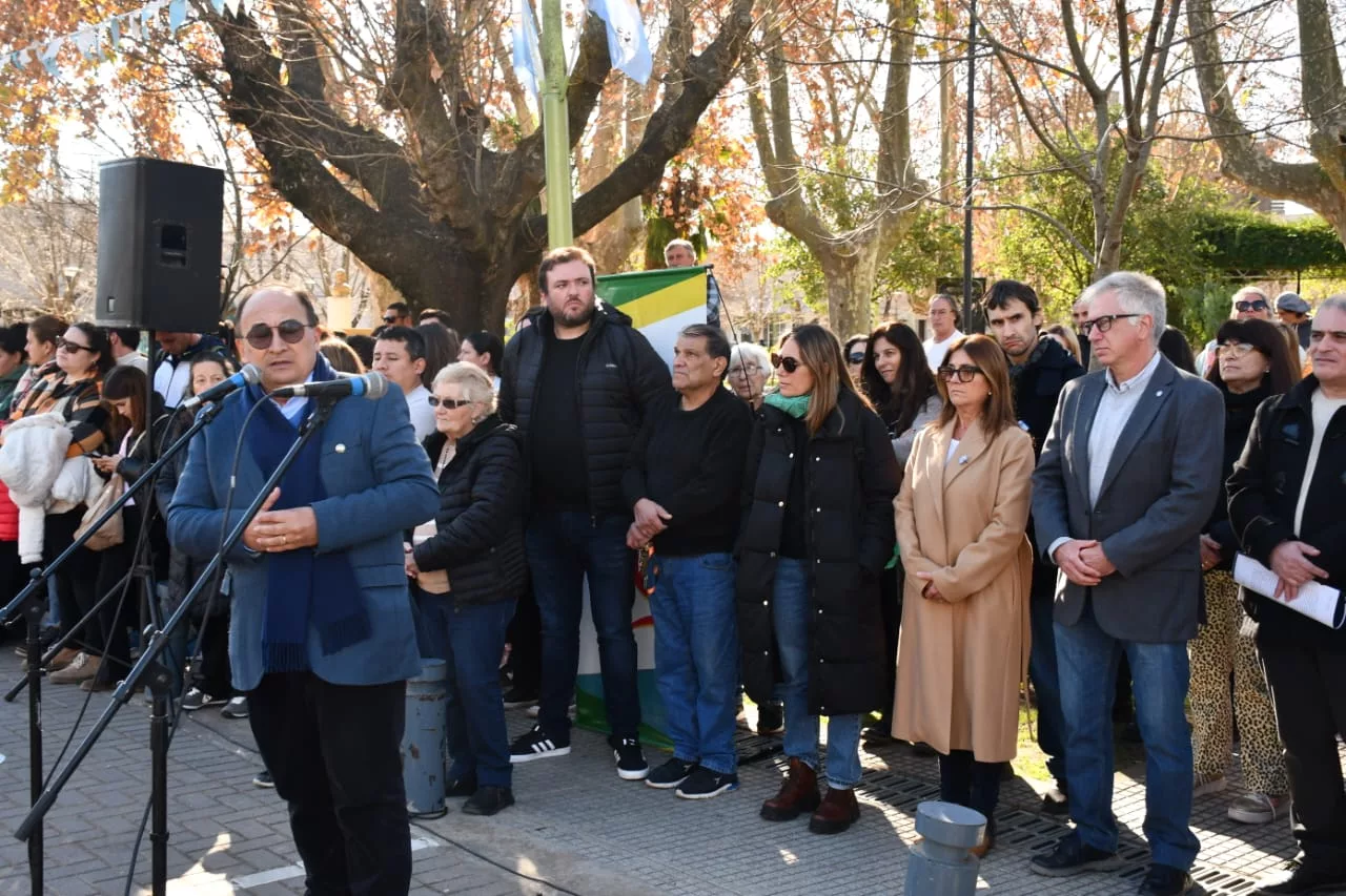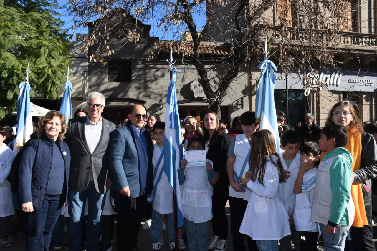 El acto se realizó en Homenaje a un nuevo Aniversario de la Muerte del General Manuel Belgrano, frente a su Monumento, ubicado en la Plaza Principal, sobre la Avenida que lleva su nombre. Allí se entonaron las estrofas del Himno Nacional interpretado por el dúo Flavia y Walter, que al final también cantaron Aurora. Luego se depositaron las ofrendas con ramos de laureles y hubo palabras de una docente del Instituto Niño Jesús y la Directora de la Escuela 38, como así también del Intendente Municipal Ingeniero José Luis Salomón. Posteriormente el Inspector Jefe Distrital Hernán Ponce tomó la promesa a todos los alumnos presentes. A continuación se realizó la entrega de los certificados correspondientes y hubo una participación de la Escuela de Danzas Folclóricas del Profesor Hernán Calcaterra. Todo concluyó con el tradicional chocolate Patrio para todos los participantes frente al Municipio local.