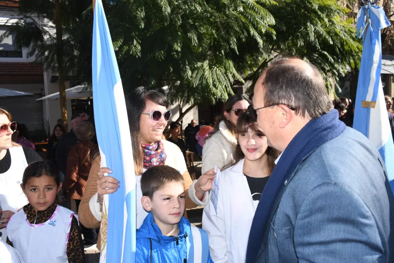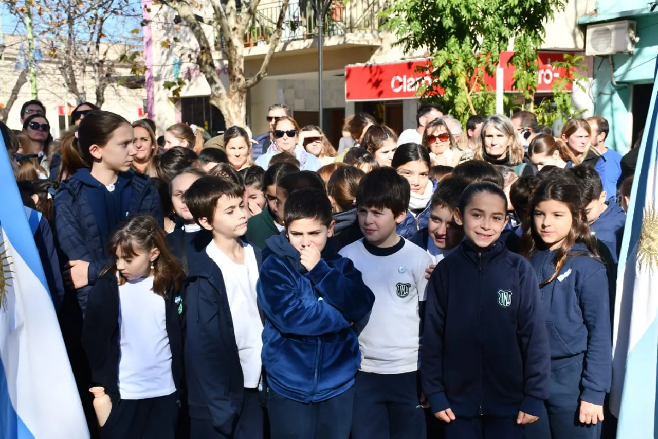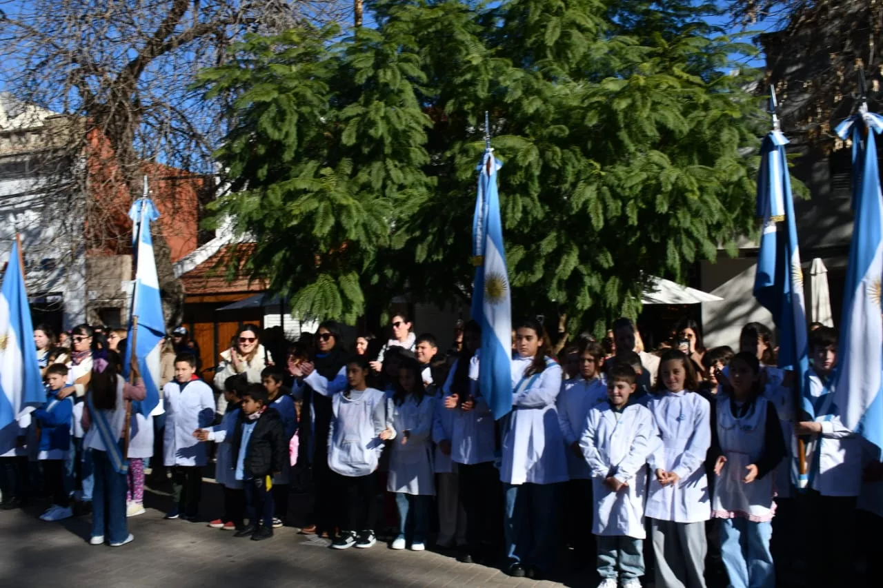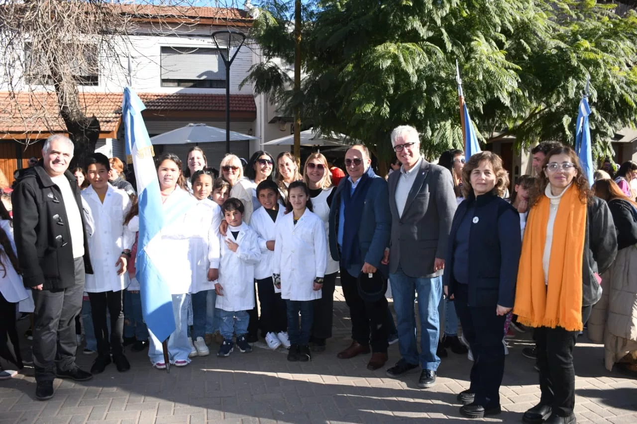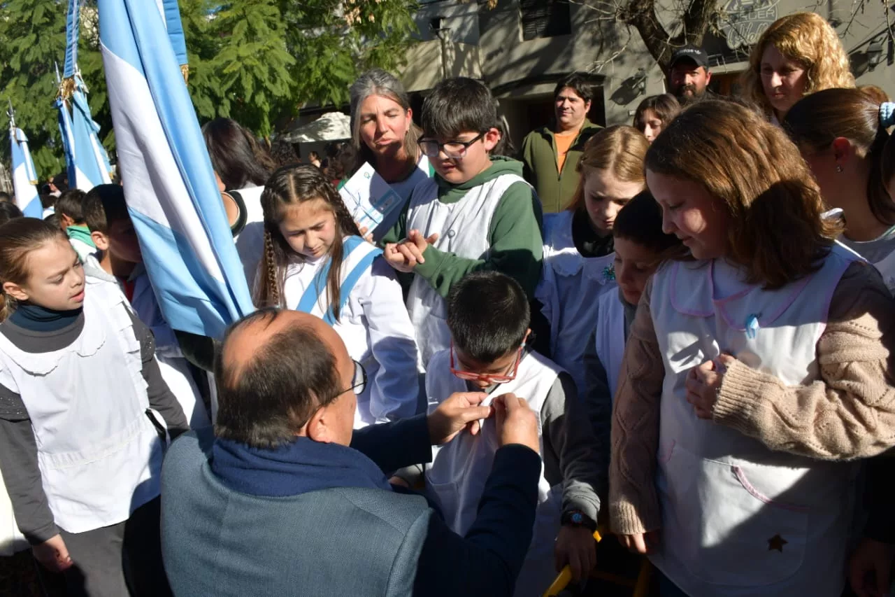 El acto se realizó en Homenaje a un nuevo Aniversario de la Muerte del General Manuel Belgrano, frente a su Monumento, ubicado en la Plaza Principal, sobre la Avenida que lleva su nombre. Allí se entonaron las estrofas del Himno Nacional interpretado por el dúo Flavia y Walter, que al final también cantaron Aurora. Luego se depositaron las ofrendas con ramos de laureles y hubo palabras de una docente del Instituto Niño Jesús y la Directora de la Escuela 38, como así también del Intendente Municipal Ingeniero José Luis Salomón. Posteriormente el Inspector Jefe Distrital Hernán Ponce tomó la promesa a todos los alumnos presentes. A continuación se realizó la entrega de los certificados correspondientes y hubo una participación de la Escuela de Danzas Folclóricas del Profesor Hernán Calcaterra. Todo concluyó con el tradicional chocolate Patrio para todos los participantes frente al Municipio local.