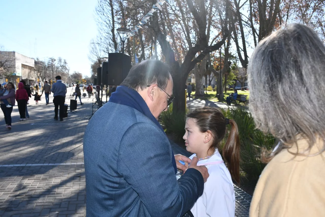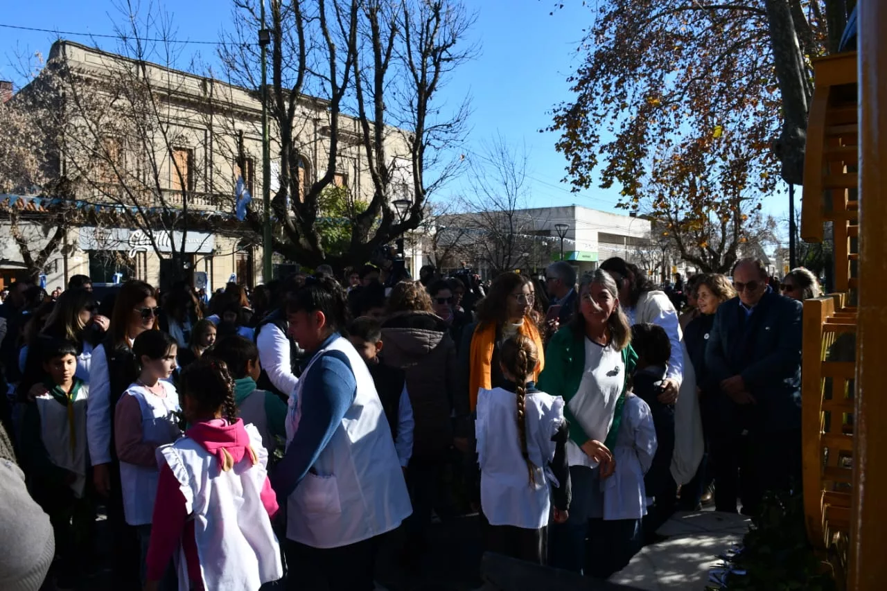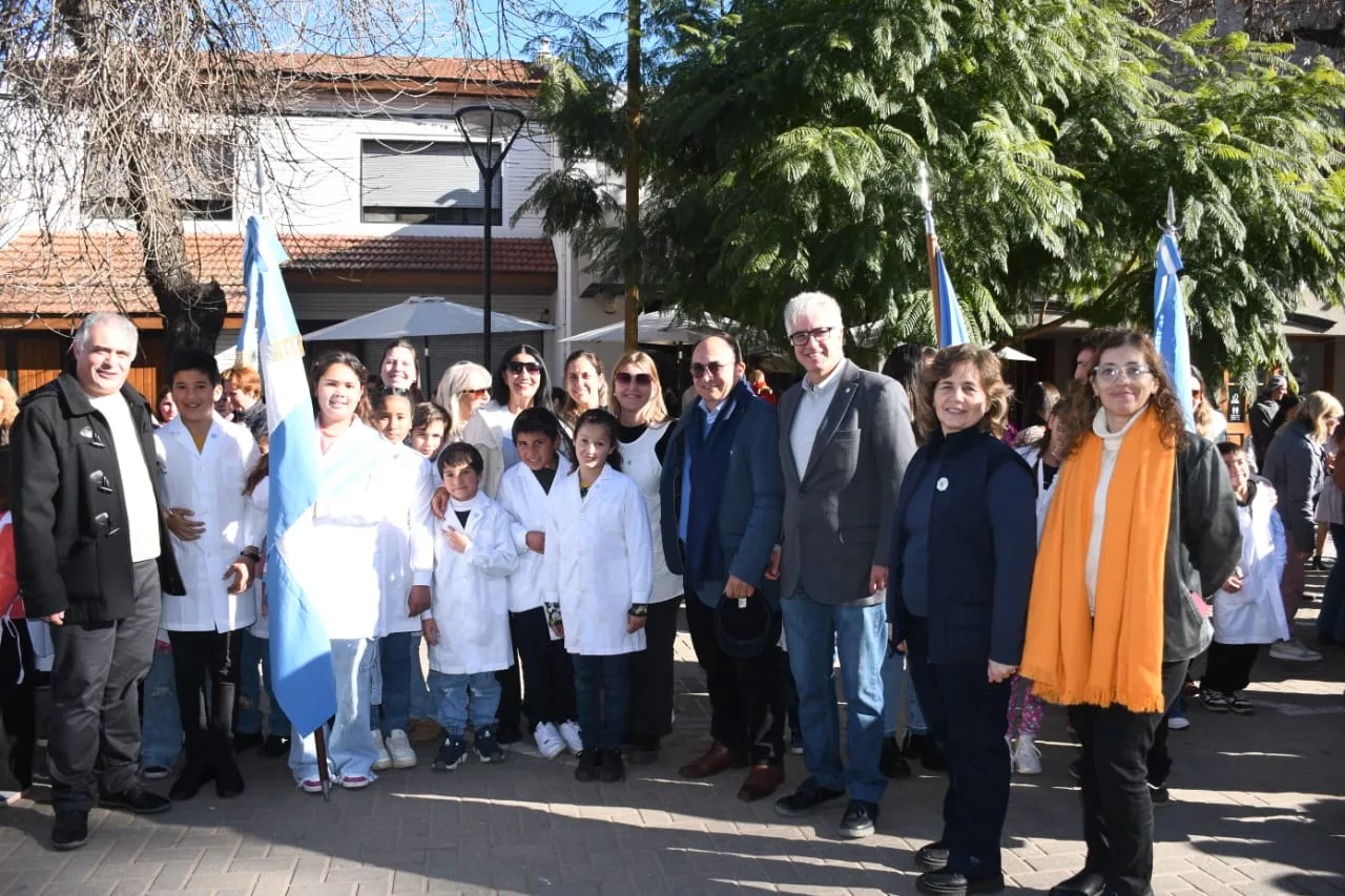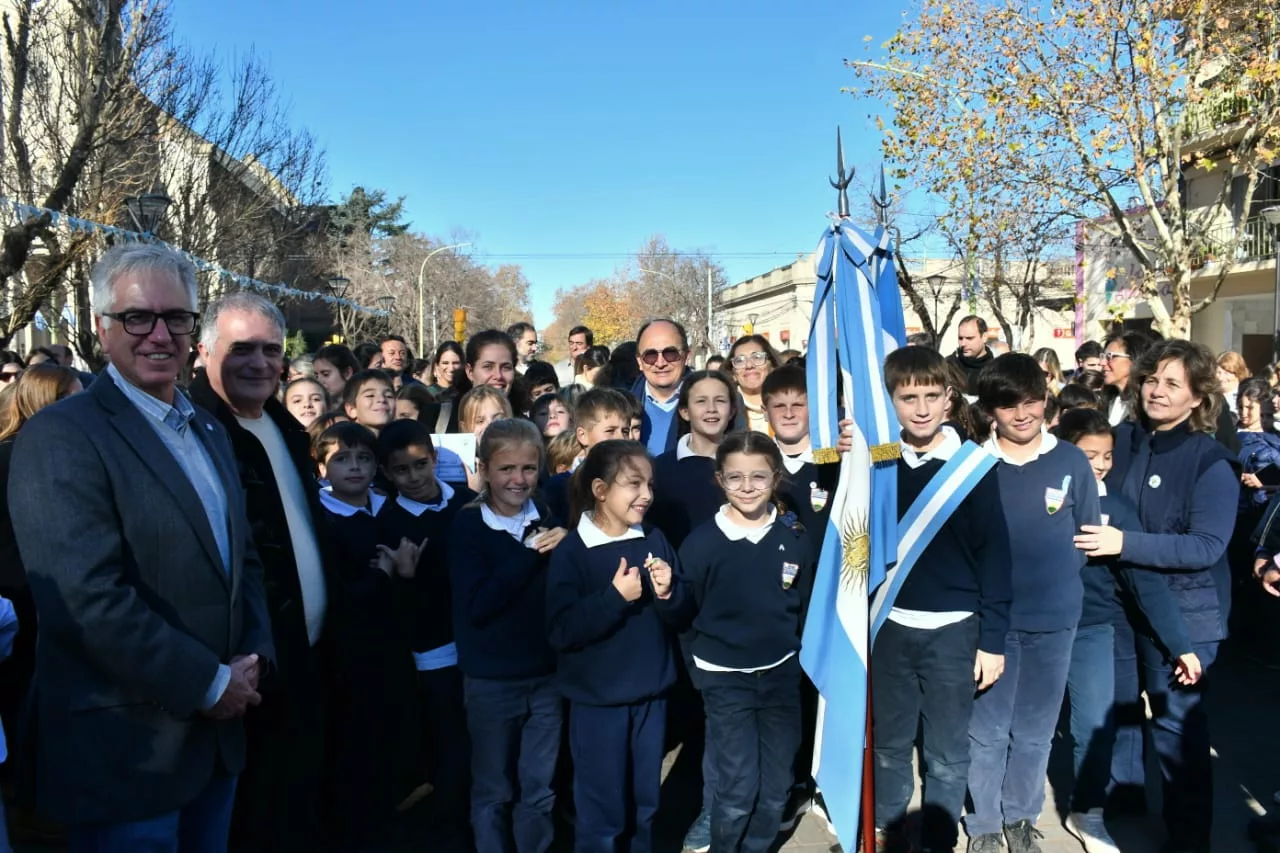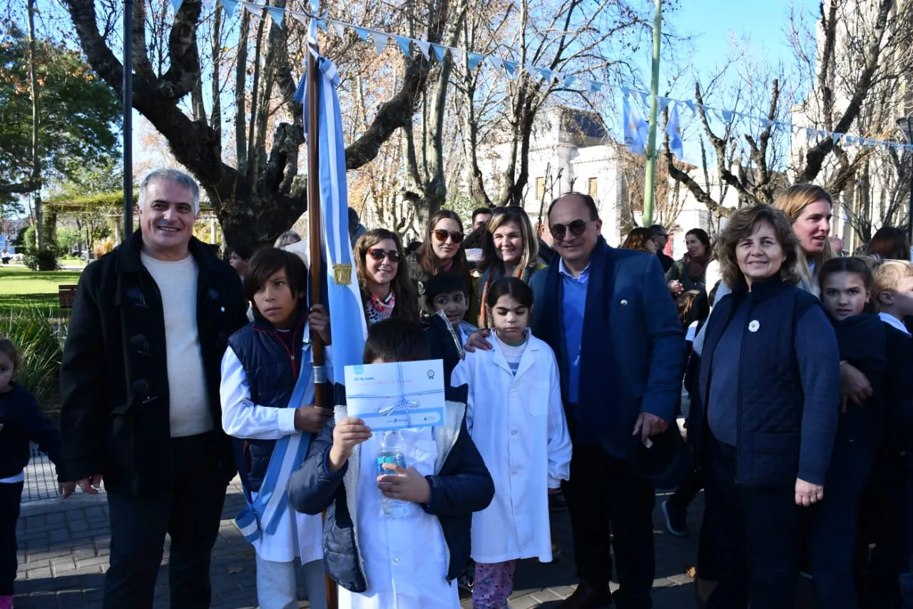 El acto se realizó en Homenaje a un nuevo Aniversario de la Muerte del General Manuel Belgrano, frente a su Monumento, ubicado en la Plaza Principal, sobre la Avenida que lleva su nombre. Allí se entonaron las estrofas del Himno Nacional interpretado por el dúo Flavia y Walter, que al final también cantaron Aurora. Luego se depositaron las ofrendas con ramos de laureles y hubo palabras de una docente del Instituto Niño Jesús y la Directora de la Escuela 38, como así también del Intendente Municipal Ingeniero José Luis Salomón. Posteriormente el Inspector Jefe Distrital Hernán Ponce tomó la promesa a todos los alumnos presentes. A continuación se realizó la entrega de los certificados correspondientes y hubo una participación de la Escuela de Danzas Folclóricas del Profesor Hernán Calcaterra. Todo concluyó con el tradicional chocolate Patrio para todos los participantes frente al Municipio local.