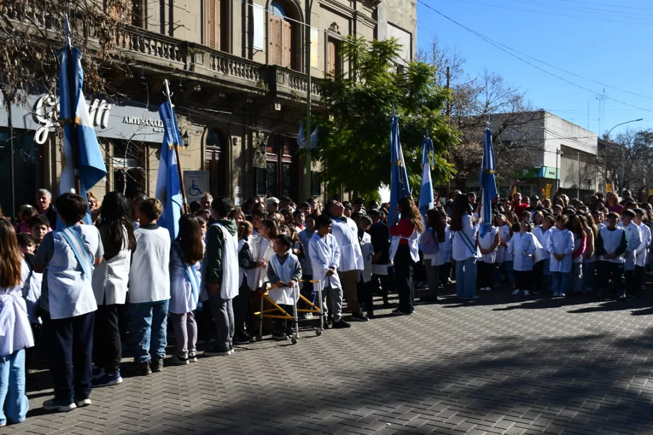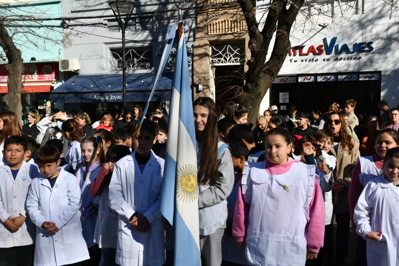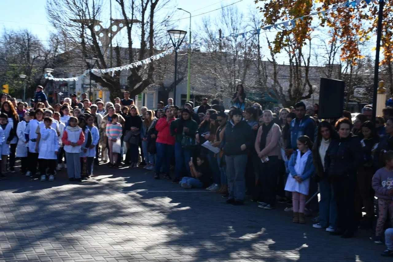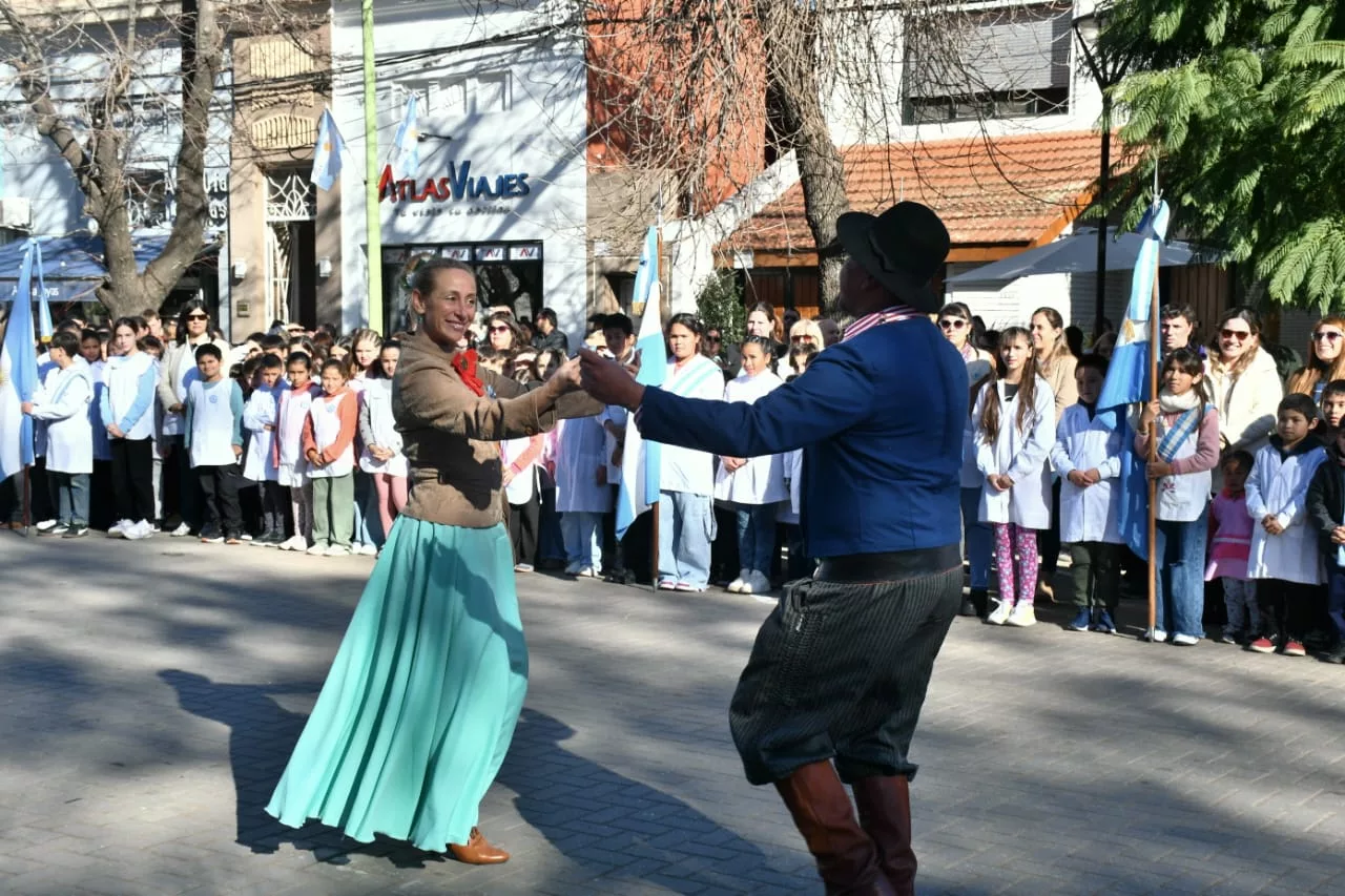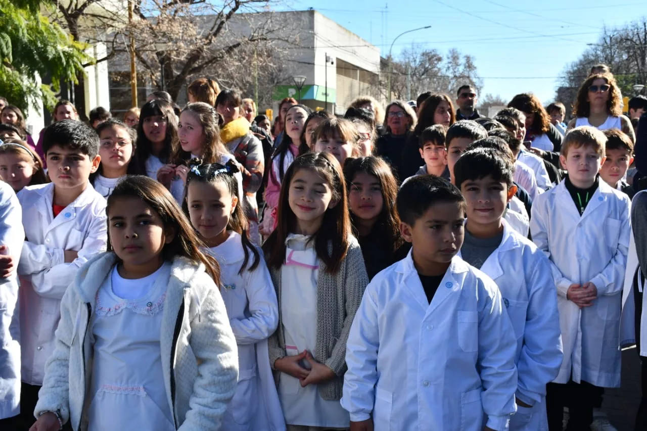 El acto se realizó en Homenaje a un nuevo Aniversario de la Muerte del General Manuel Belgrano, frente a su Monumento, ubicado en la Plaza Principal, sobre la Avenida que lleva su nombre. Allí se entonaron las estrofas del Himno Nacional interpretado por el dúo Flavia y Walter, que al final también cantaron Aurora. Luego se depositaron las ofrendas con ramos de laureles y hubo palabras de una docente del Instituto Niño Jesús y la Directora de la Escuela 38, como así también del Intendente Municipal Ingeniero José Luis Salomón. Posteriormente el Inspector Jefe Distrital Hernán Ponce tomó la promesa a todos los alumnos presentes. A continuación se realizó la entrega de los certificados correspondientes y hubo una participación de la Escuela de Danzas Folclóricas del Profesor Hernán Calcaterra. Todo concluyó con el tradicional chocolate Patrio para todos los participantes frente al Municipio local.