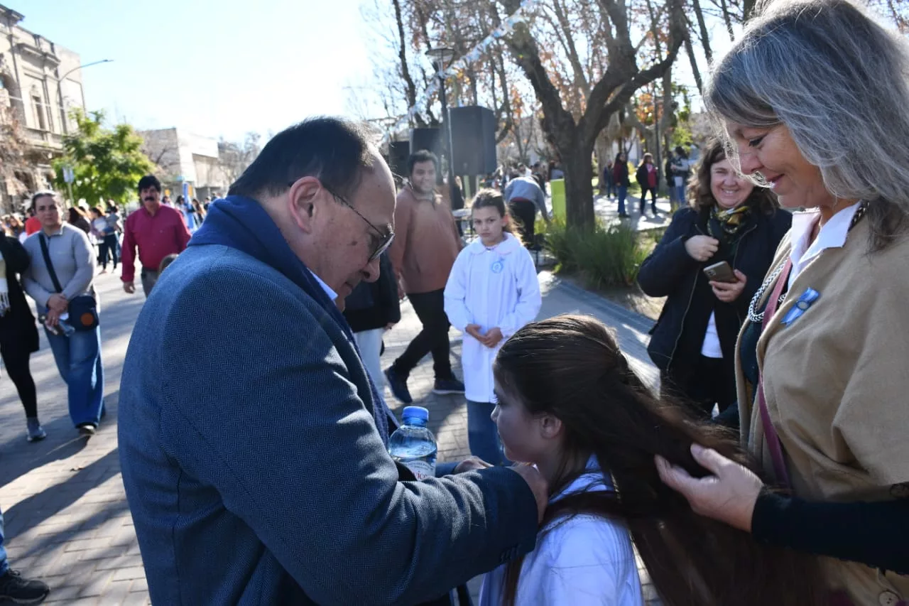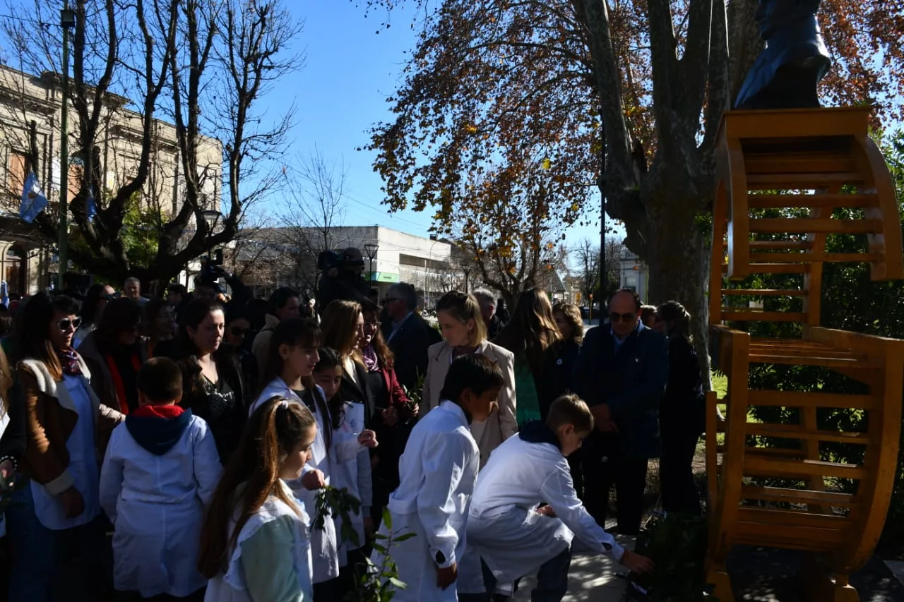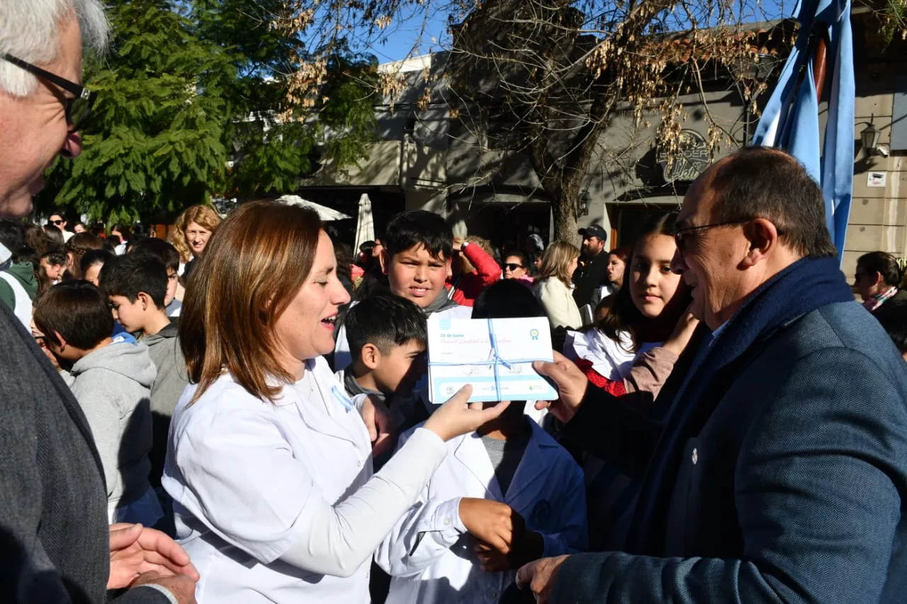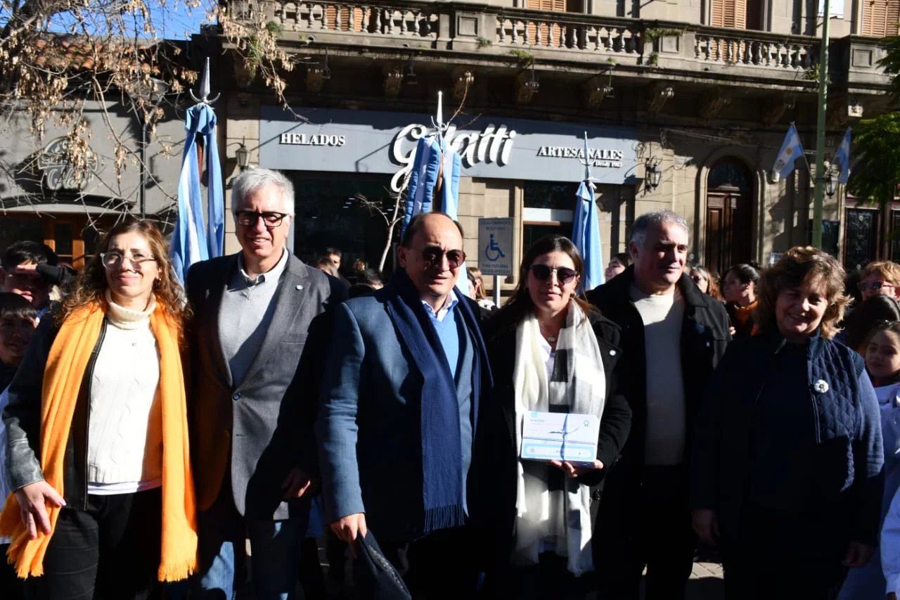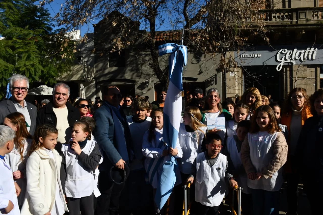 El acto se realizó en Homenaje a un nuevo Aniversario de la Muerte del General Manuel Belgrano, frente a su Monumento, ubicado en la Plaza Principal, sobre la Avenida que lleva su nombre. Allí se entonaron las estrofas del Himno Nacional interpretado por el dúo Flavia y Walter, que al final también cantaron Aurora. Luego se depositaron las ofrendas con ramos de laureles y hubo palabras de una docente del Instituto Niño Jesús y la Directora de la Escuela 38, como así también del Intendente Municipal Ingeniero José Luis Salomón. Posteriormente el Inspector Jefe Distrital Hernán Ponce tomó la promesa a todos los alumnos presentes. A continuación se realizó la entrega de los certificados correspondientes y hubo una participación de la Escuela de Danzas Folclóricas del Profesor Hernán Calcaterra. Todo concluyó con el tradicional chocolate Patrio para todos los participantes frente al Municipio local.