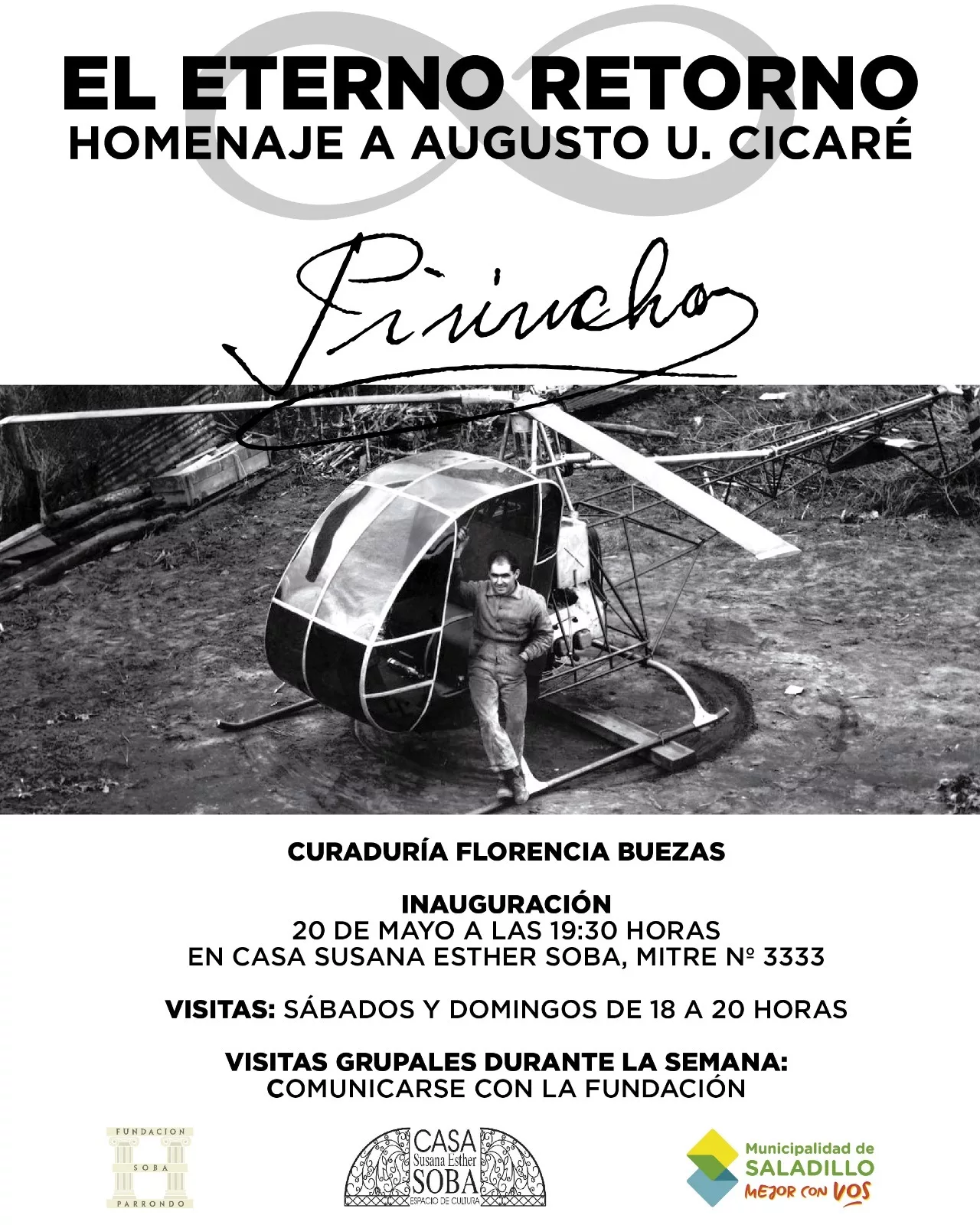 Fundación Soba Parrondo en colaboración con la Dirección de Cultura y Derechos Humanos, realizará la inauguración de la exposición homenaje a Augusto U. Cicaré el 20 de mayo a las 19:30 hs. en Casa Susana E. Soba, Mitre N° 3333, enmarcada en el mes aniversario del natalicio de Pirincho y en el recorrido cultural por la Noche de los Museos.