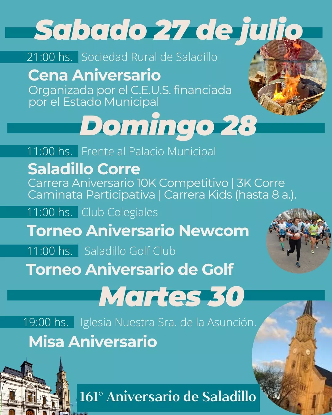 Actividades que tenemos programadas para celebrar un nuevo aniversario de nuestra ciudad: actos, celebraciones, inauguraciones y mucho más. Agendá estas fechas y participá de los festejos por el 161° cumpleaños de Saladillo. 📅✨