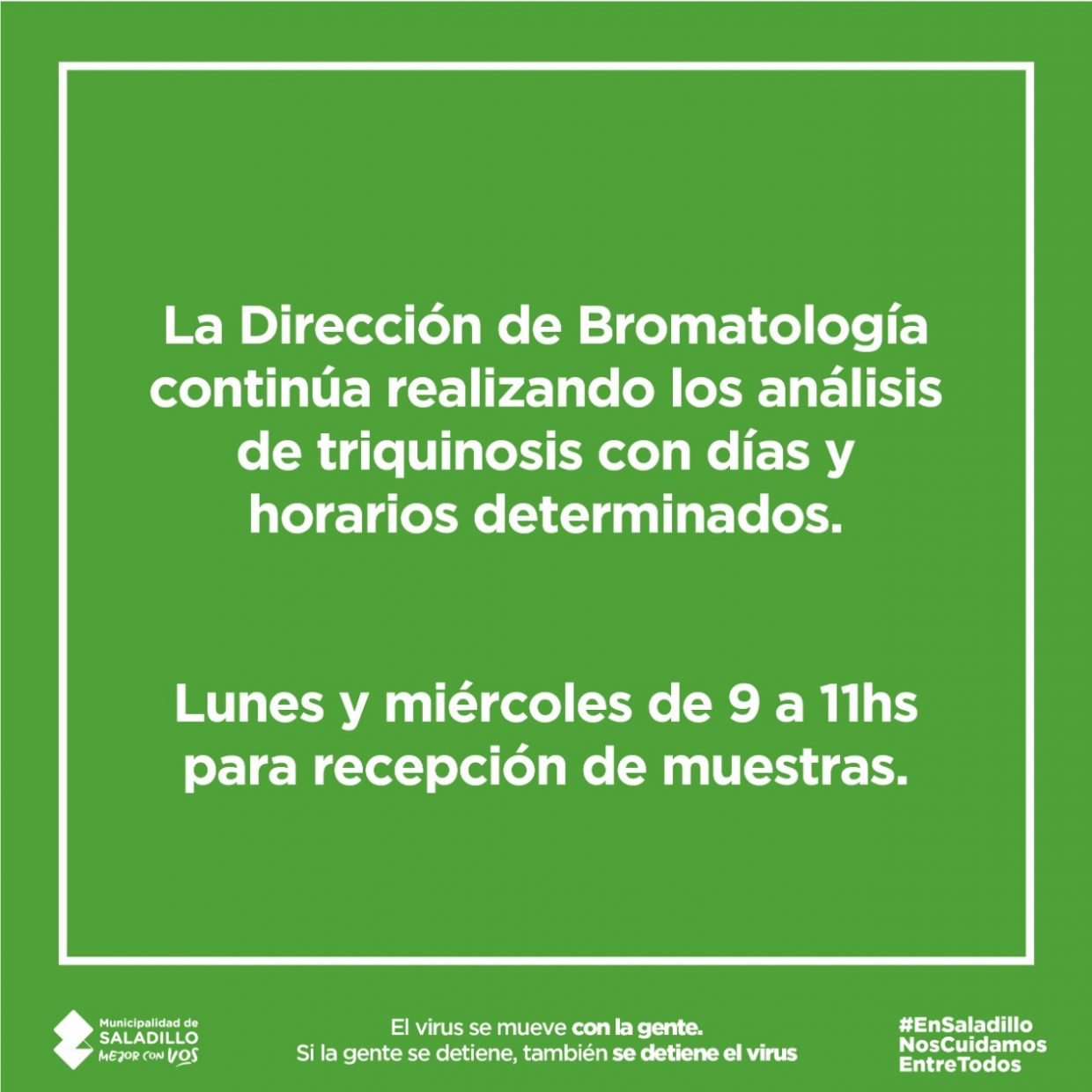 La Dirección de Bromatología continúa realizando los análisis de triquinosis con días y horarios determinados.