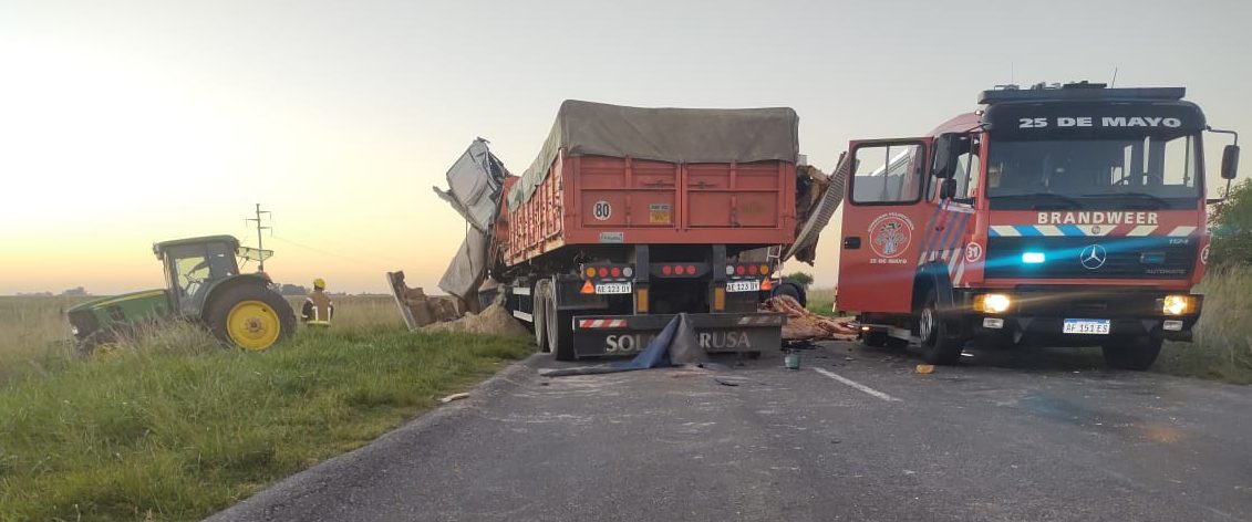 Dos personas perdieron la vida y otra se encuentra internada en la terapia intensiva del Hospital Unzué, como consecuencia de un choque protagonizado por dos camiones este martes por la madrugada en el kilómetro 220 de la Ruta Provincial 51, a la altura de la localidad de Gobernador Ugarte, en el partido de 25 de Mayo.