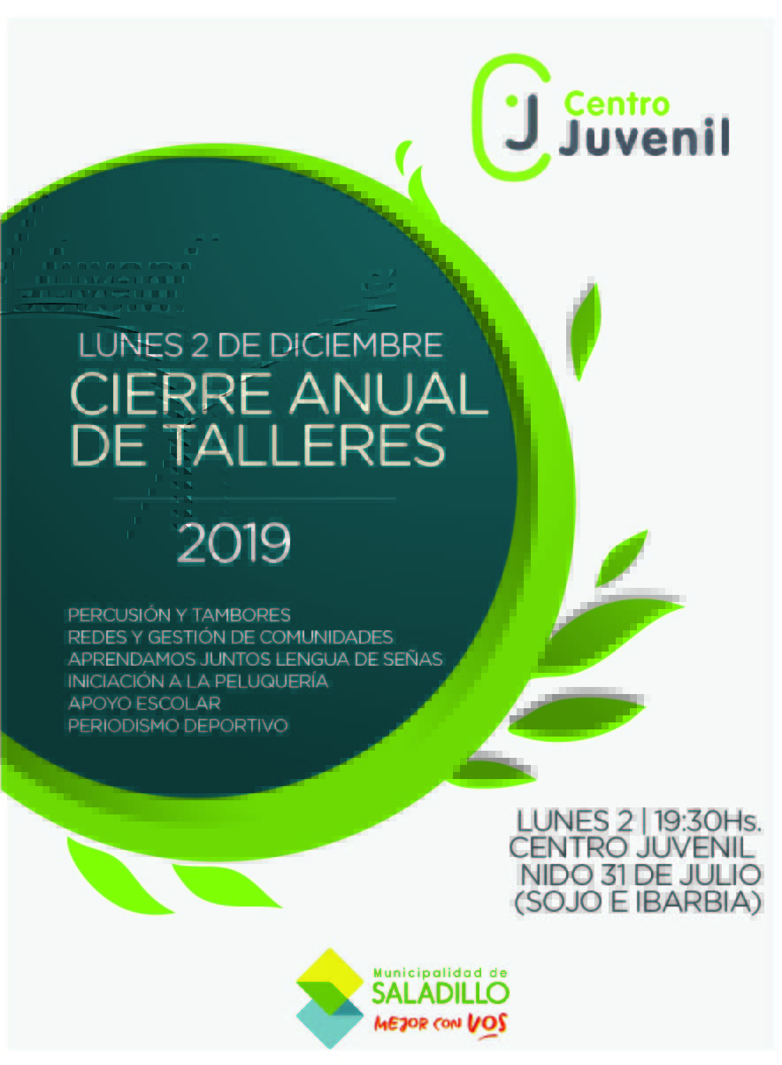 Después de un hermoso año compartido, llegó el momento de hacer el cierre de los Talleres que se dictaron durante el año en el CENTRO JUVENIL en el que se entregarán los certificados correspondientes a cada uno de los chicos que hicieron su paso por algunos de los mismos.