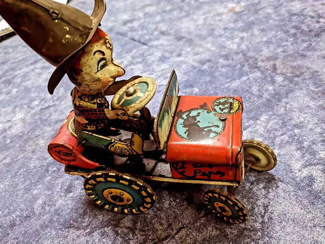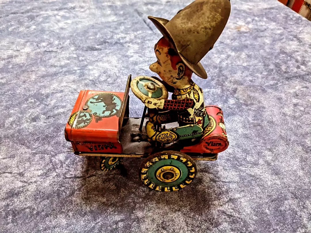 “Este simpático juguete forma parte de mi colección desde hace varios años, producto de un obsequio de parte de una familia amiga. El mismo funciona perfectamente a pesar de sus casi 70 años o más. Como todos los anteriores, se puede apreciar en mi museo particular”. (Osvaldo Debiasi)