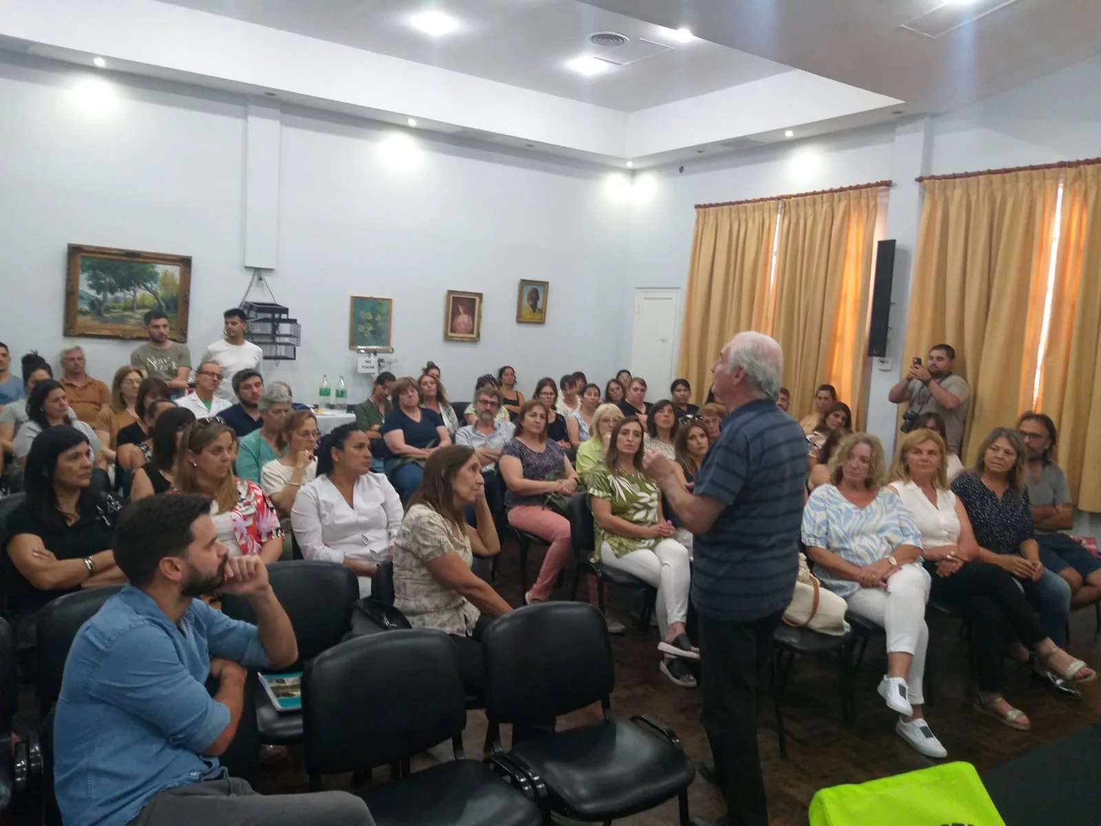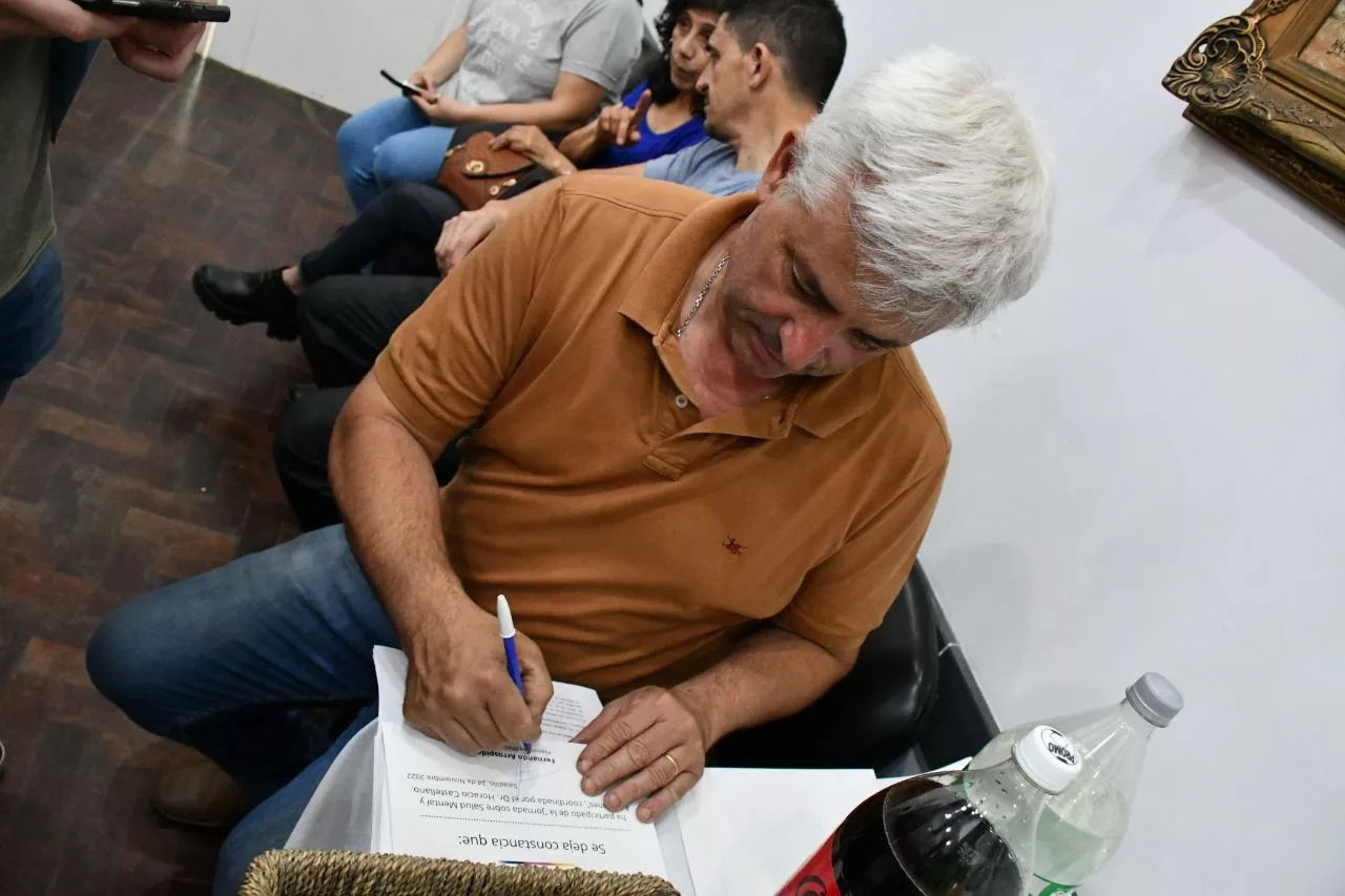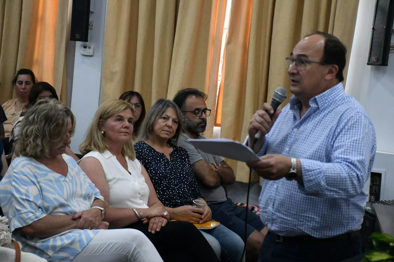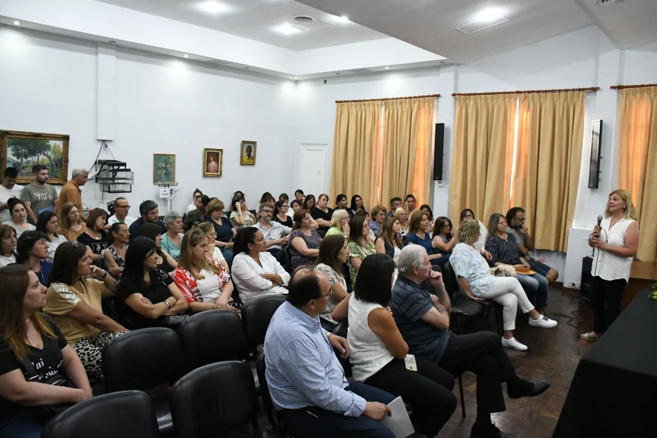 Concejales: Paqui, Ceci Bustamante, Nano Arrodpide y Cisneros, secretario del HCD Macagno, junto al intendente, director de juventudes: Berna Ruviera, consejeras escolares, docentes y vecinos de la comunidad participaron de la jornada de salud mental y adicciones coordinada por el doctor Horacio Castellano.