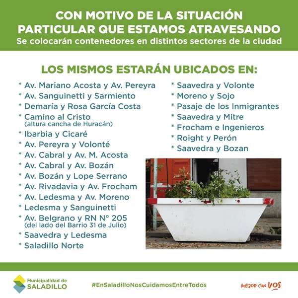 Con motivo de la situación particular que estamos atravesando se colocaron contenedores en distintos puntos de la Ciudad !