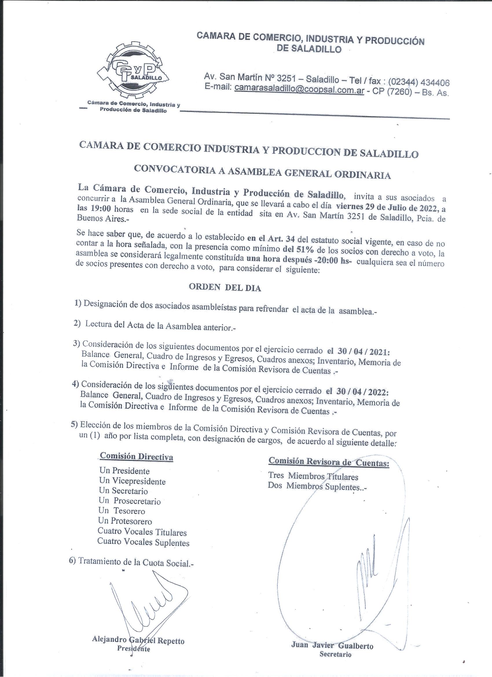 SaladilloInformación General Convocatoria de la Asamblea Anual julio 21, 2022 - Publicidad - El viernes 29 de julio a las 19:00 se llevara a cabo la asamblea anual de la Cámara de comercio
