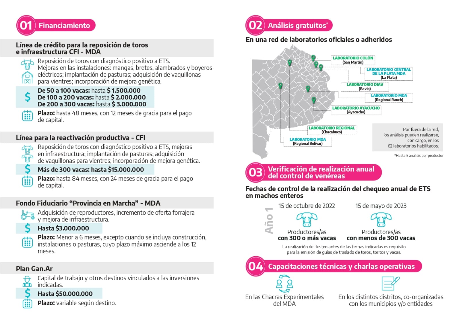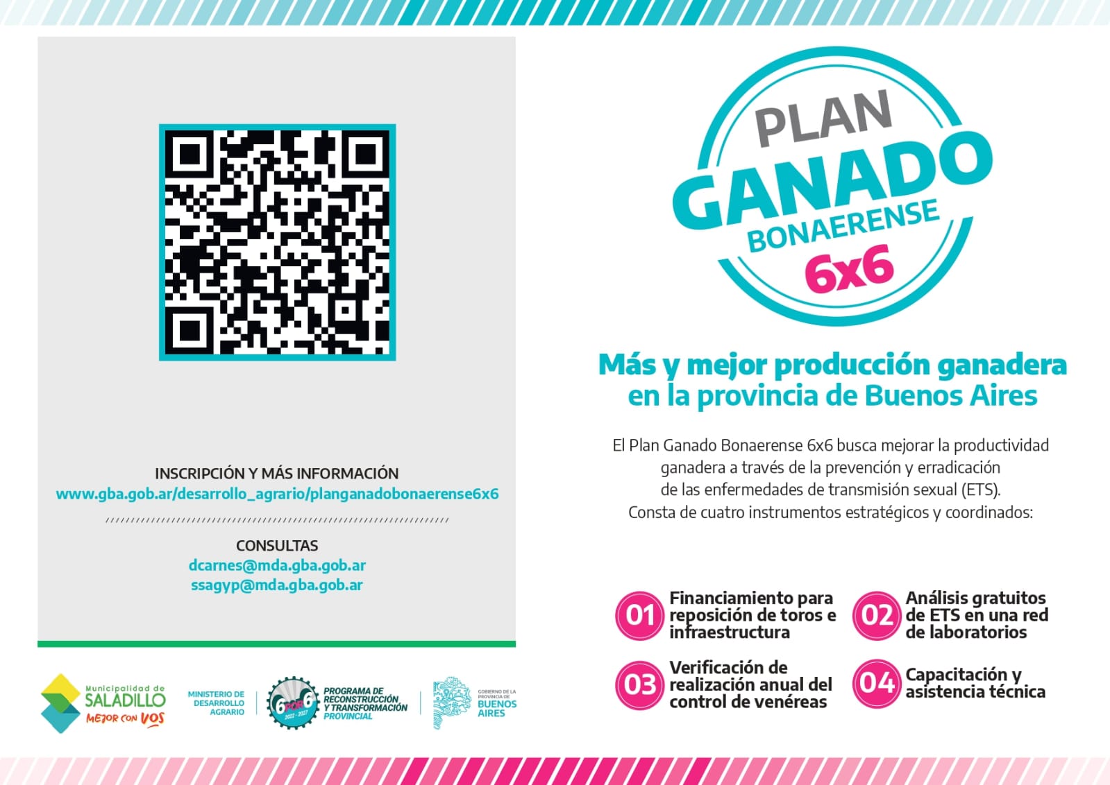Desde la Secretaría de Desarrollo Local de la Municipalidad de Saladillo se comparte información del Ministerio de Desarrollo Agrario de la Provincia de Buenos Aires personalizada para nuestra ciudad respecto al Plan Ganadero Bonaerense 6×6. Este plan busca fortalecer la producción ganadera y seguir avanzando en la prevención y erradicación de las enfermedades venéreas en la PBA.