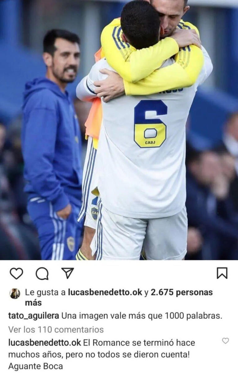 Ante esta situación, Lucas Benedetto reveló la mala relación con los la leyenda futbolística e ídolo xeneize al comentar un curioso mensaje en la publicación del periodista Tato Aguilera: «El Romance se terminó hace muchos años, pero no todos se dieron cuenta! Aguante Boca».