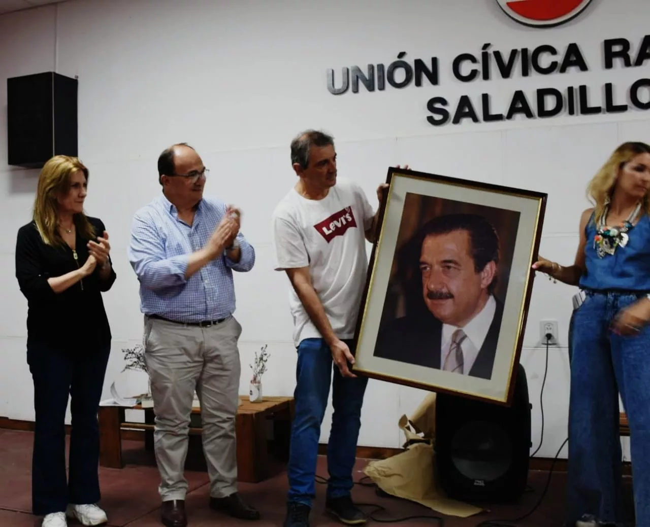 Finalmente, con la presencia del Intendente Jose Luis Salomon y la Diputada Alejandra Lorden, se recibió la donación de un cuadro de Raul Alfonsín. Un hermoso Gesto de “Pelín Coronel” quien dejó un mensaje emotivo y concreto, en relación al deseo de que hoy el cuadro puede lucirse en la casa radical.