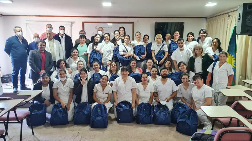 Con la presencia de Zubieta Fernando representante de la Juventud del #SindicatoDeSalud junto al Director Ejecutivo Dr. Piñeyro Javier, Asociados, Dr. Crognale Felix, Dr. Jury Luis, Director de Capacitación y Formación en en Enfermería de la Región X, Lic.Eduardo Abba, Coordinadora del 2do. año de la Tecnicatura en Enfermería Lic. Mónica Nallim, Jefe de Enfermería Luis Reynoso, Jefe de RRHH Dalto Ariel y el Delegado Gral. Pablo Moscatello, realizaron la entrega de mochilas técnicas a estudiantes del 2° año de la Tecnicatura Superior en Enfermería de la localidad de Saladillo Impulsadas por el Programa PRONAFE-Inet.