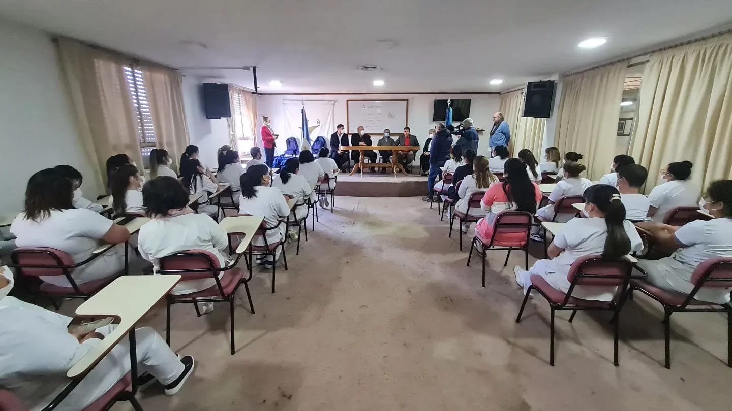 Hoy se realizó en el SUM del Hospital Posadas de nuestra ciudad, la entrega de mochilas técnicas a estudiantes de enfermería de Segundo año.