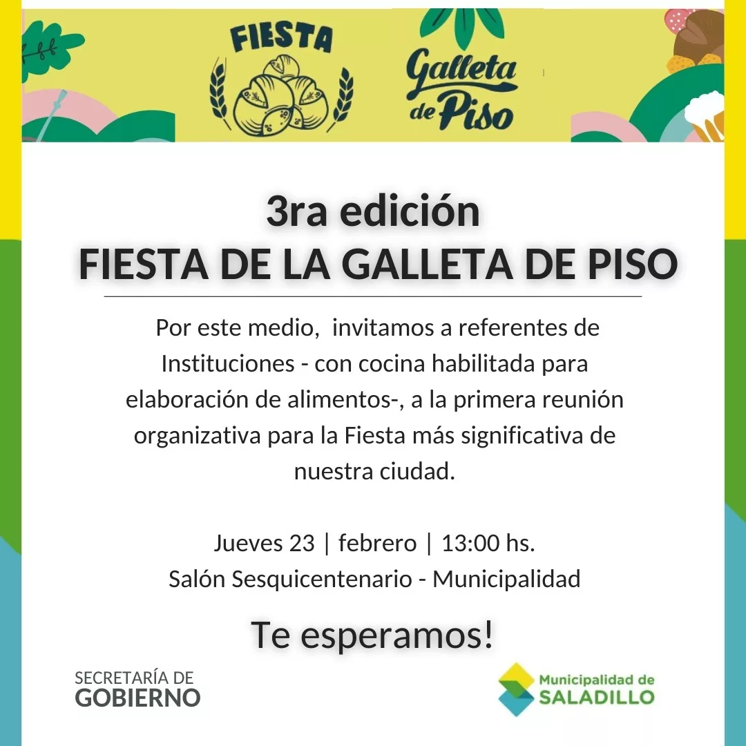 Por este medio, invitamos a referentes de Instituciones -con cocina habilitada para elaboración de alimentos-, a la primera reunión organizativa para la Fiesta más significativa de nuestra ciudad.