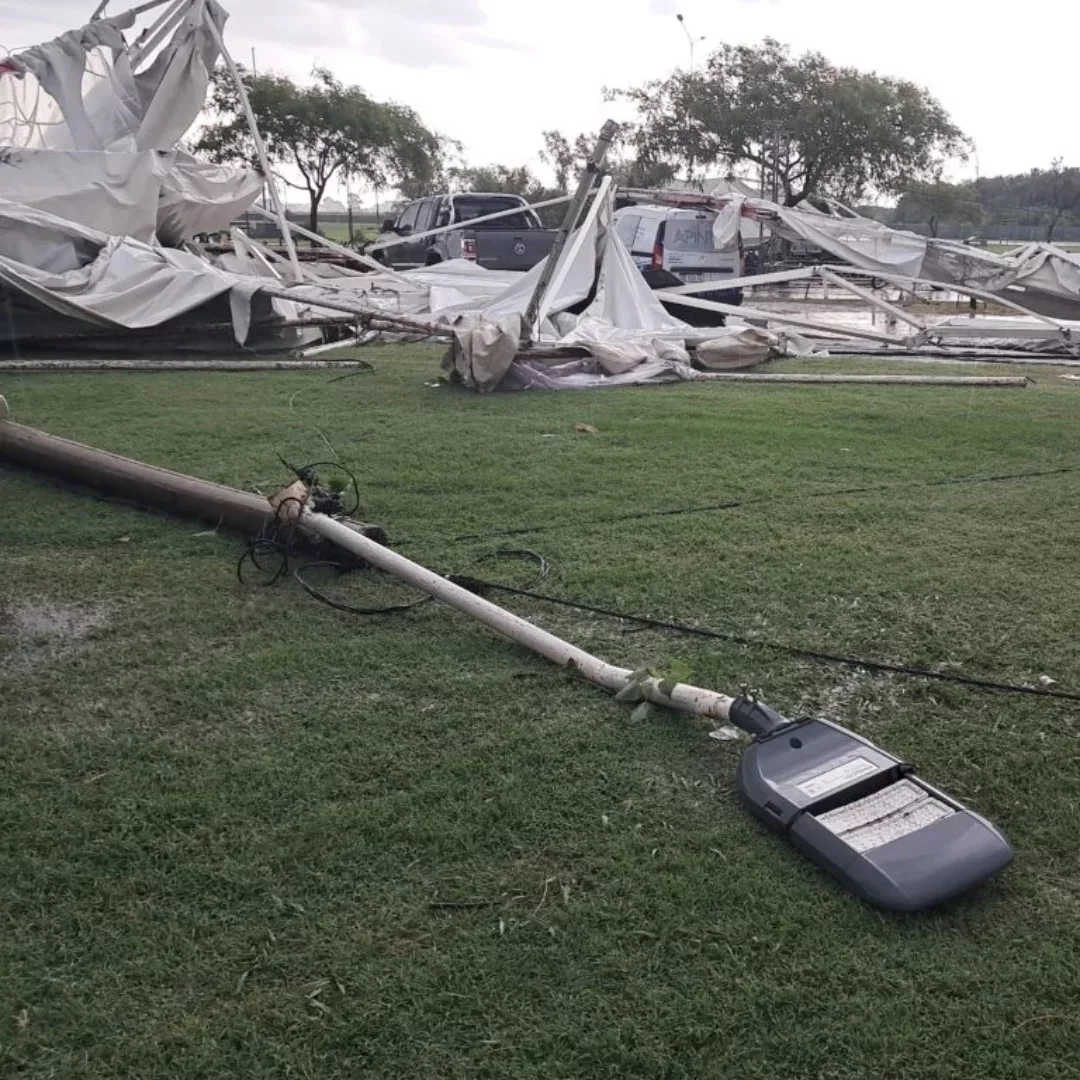 Fuerte temporal en Bragado: Hubo voladuras de techos y se desprendió una carpa en la Pista de Ciclismo También se reportan daños en Olascoaga con caída de granizo. Los bomberos trabajan en varios sectores de la ciudad.