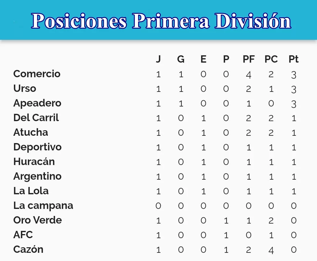 Por su parte Unión Apeadero, en el partido que cerró la primera fecha, venció al Alvear FC 1 a 0, con gol de Manuel Ferrera.