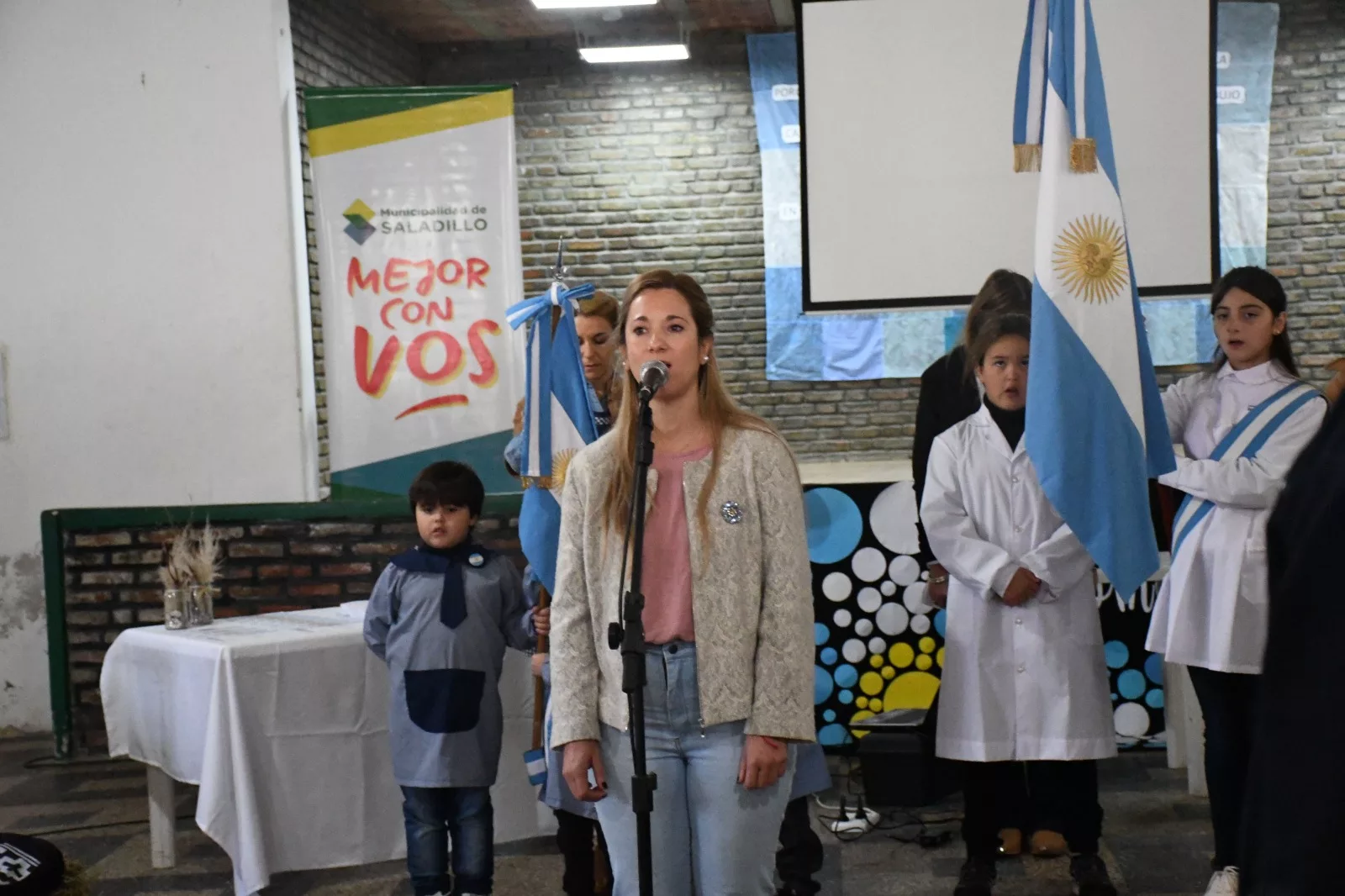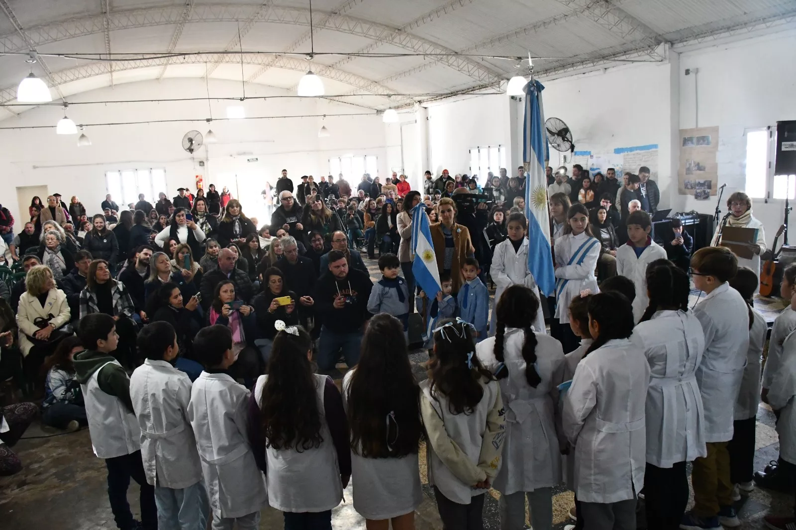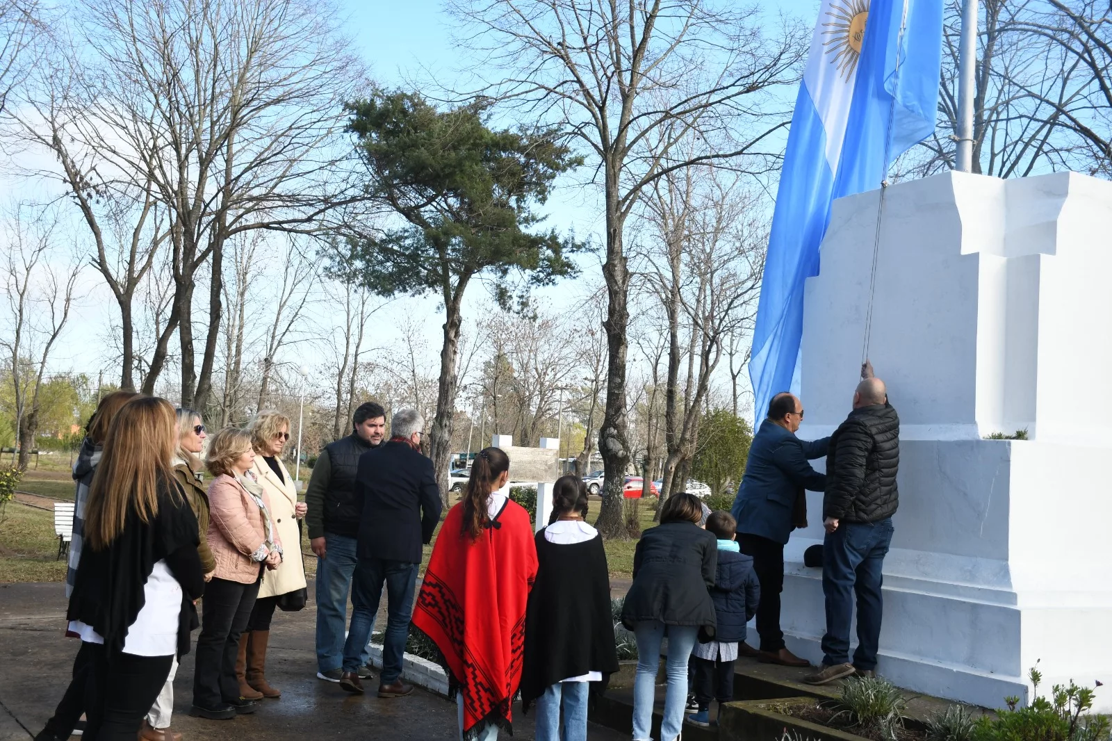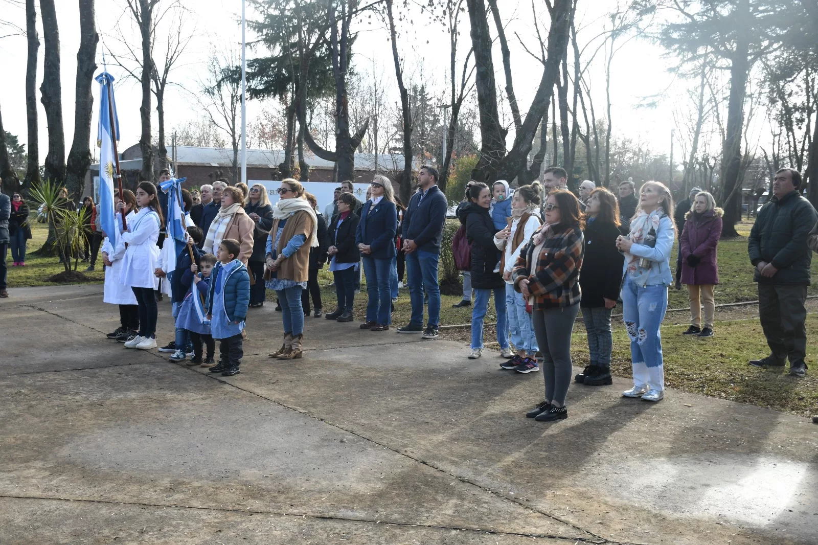 Tuvo lugar ayer el acto central por el Día de la Bandera en la localidad de Álvarez de Toledo en conmemoración por el 102° Aniversario de la muerte del General Manuel Belgrano. Allí se procedió al izamiento de la bandera y a la colocación de ofrendas de ramos de laureles en el busto ubicado en la plaza de la localidad. Dentro de las instalaciones del club y luego del ingreso de las banderas de ceremonia, interpretó las estrofas del himno nacional la cantautora local Agustina Velasco, luego estuvo la bendición del padre Tomás Rodríguez y hubo palabras a cargo de Vanina Benigni en representación de la biblioteca Adelina Dellatorre, del Delegado Guillermo Monetti y del Intendente Municipal Ing. José Luis Salomón. También ante la directora de la Escuela 14 de Toledo Sandra Cavalli los alumnos de 4to grado hicieron la promesa a la bandera. Luego la directora del Jardín Municipal El Trencito Musical Noelia Catullo, reseñó la actividad desarrollada con motivo de esta fecha y alumnos de la mencionada Escuela 14 cantaron el himno nacional, bailaron el pericón y realizaron una representación de época.