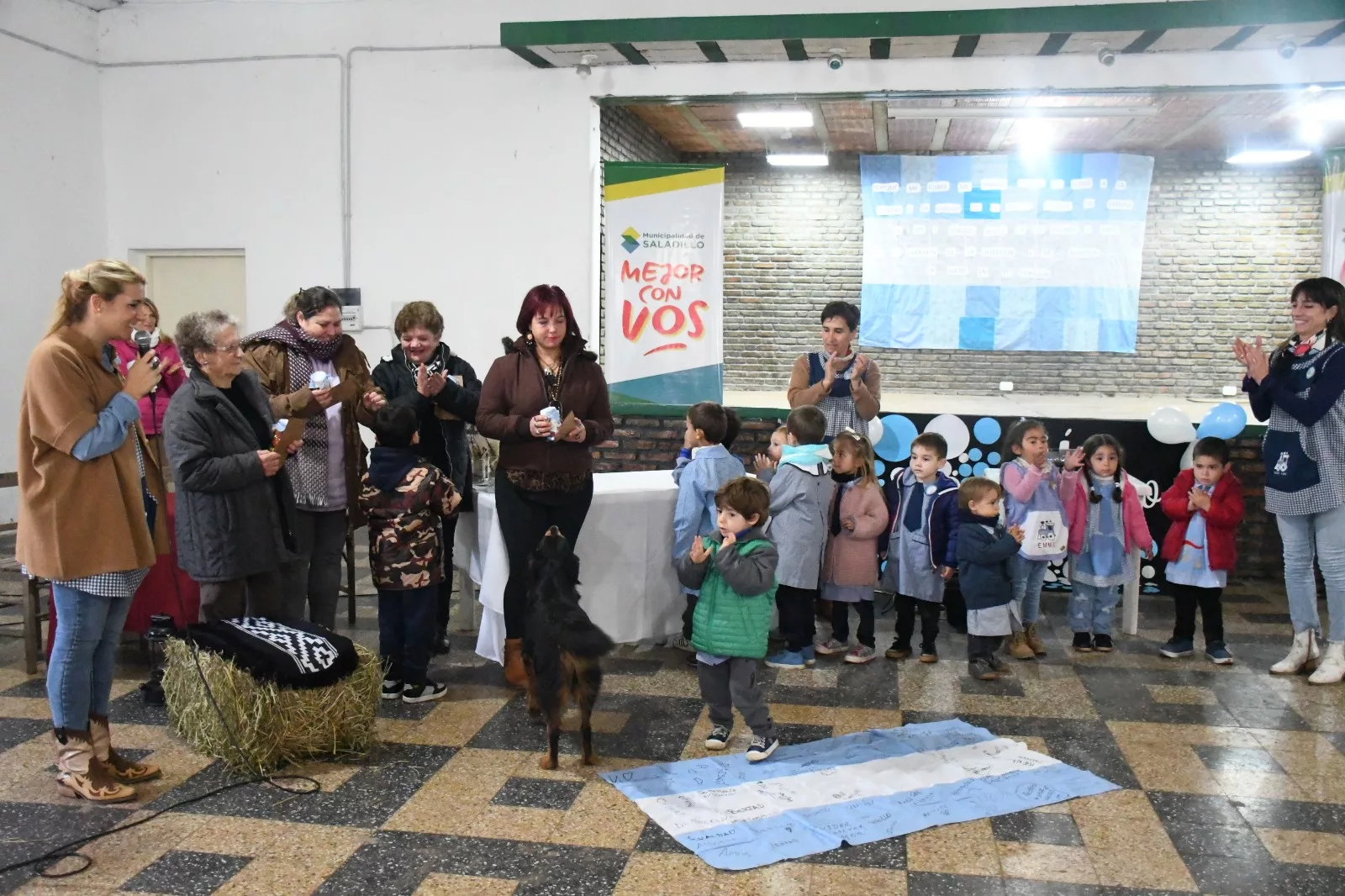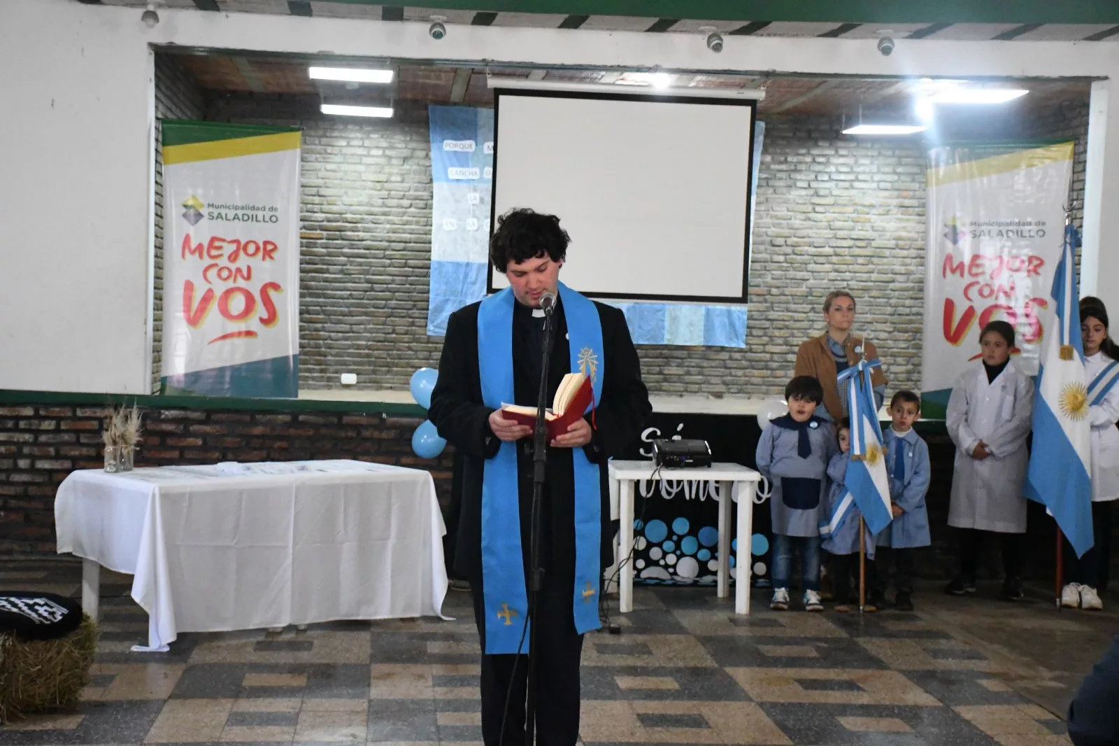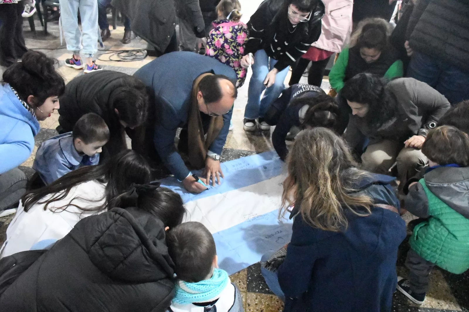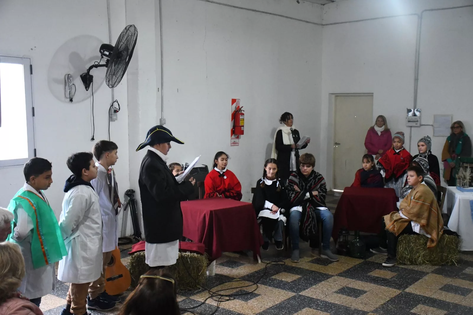 Tuvo lugar ayer el acto central por el Día de la Bandera en la localidad de Álvarez de Toledo en conmemoración por el 102° Aniversario de la muerte del General Manuel Belgrano. Allí se procedió al izamiento de la bandera y a la colocación de ofrendas de ramos de laureles en el busto ubicado en la plaza de la localidad. Dentro de las instalaciones del club y luego del ingreso de las banderas de ceremonia, interpretó las estrofas del himno nacional la cantautora local Agustina Velasco, luego estuvo la bendición del padre Tomás Rodríguez y hubo palabras a cargo de Vanina Benigni en representación de la biblioteca Adelina Dellatorre, del Delegado Guillermo Monetti y del Intendente Municipal Ing. José Luis Salomón. También ante la directora de la Escuela 14 de Toledo Sandra Cavalli los alumnos de 4to grado hicieron la promesa a la bandera. Luego la directora del Jardín Municipal El Trencito Musical Noelia Catullo, reseñó la actividad desarrollada con motivo de esta fecha y alumnos de la mencionada Escuela 14 cantaron el himno nacional, bailaron el pericón y realizaron una representación de época.