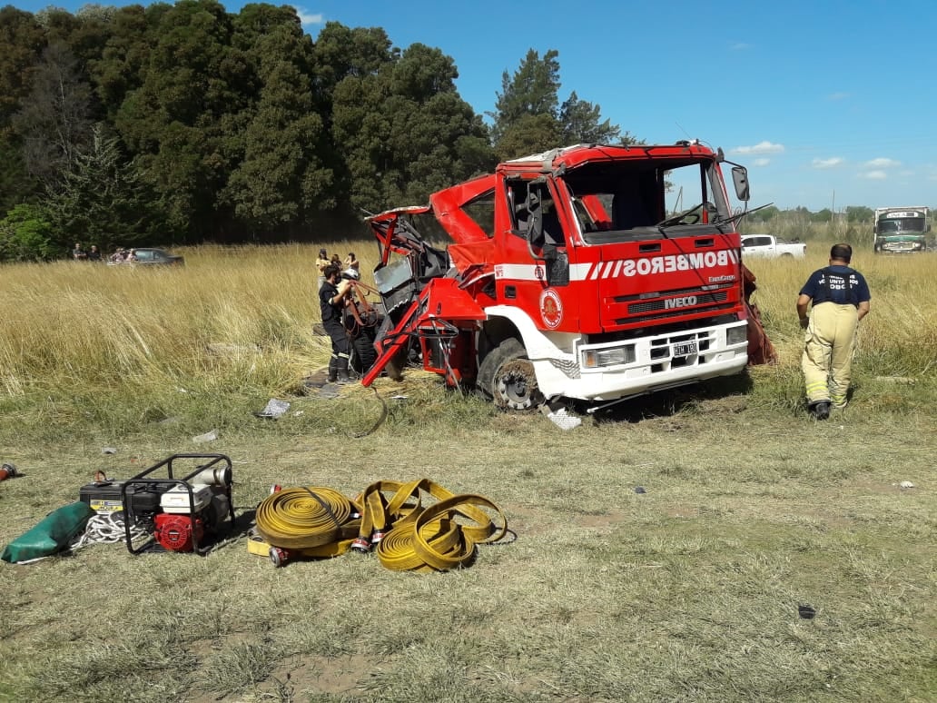 Cuando se dirigía a extinguir un incendio de pastizales a la vera de la Ruta Provincial 41, camino hacia Navarro, una unidad del cuartel central de Bomberos Voluntarios, volcó espectacularmente al salir de la primera curva.
