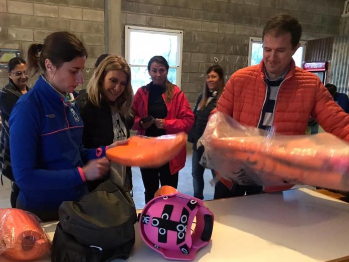 A su vez, días pasados, estuvo en el Saladillo Hockey Club, haciendo entrega de tres equipos de arquera necesarios para la práctica de ese deporte.