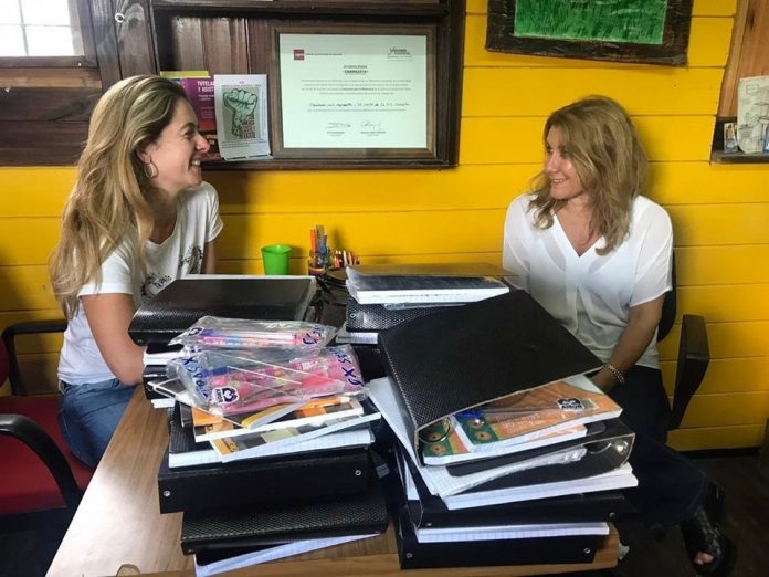 De visita a por la institución, la diputada provincial Alejandra Lordén, entregó material escolar a La Casita de la Vía, donde fue recibida por Cecilia Aquilano, integrante del equipo directivo.